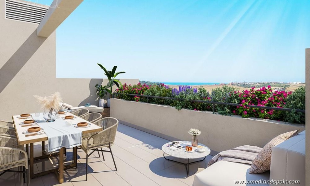 Residential complex comprising apartments with unobstructed views, near the Estepona Golf courses and its spectacular beaches. Located in a quiet area, just a few minutes from all the daily amenities, like supermarkets, schools, hospital, restaurants, and leisure activities. The beaches are only a few minutes from the complex, and with the excellent road network, the airports in Málaga or Gibraltar are less than an hour away.The project presents apartments, in a choice of models: ground floor apartment with 3 bedrooms and a private garden, mid-floor apartments with 2 bedrooms; and penthouse apartments on two floors with 1 or 2 bedrooms.
