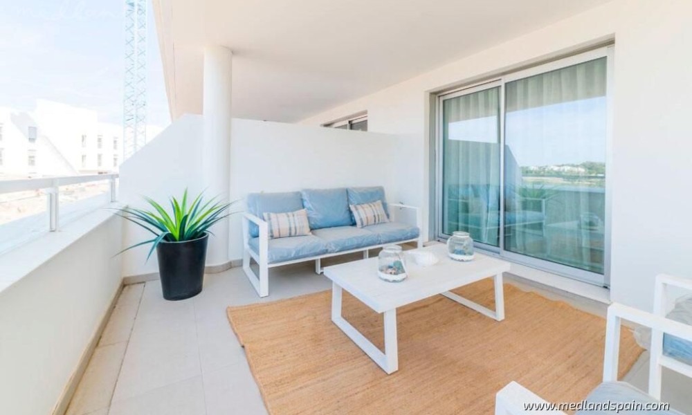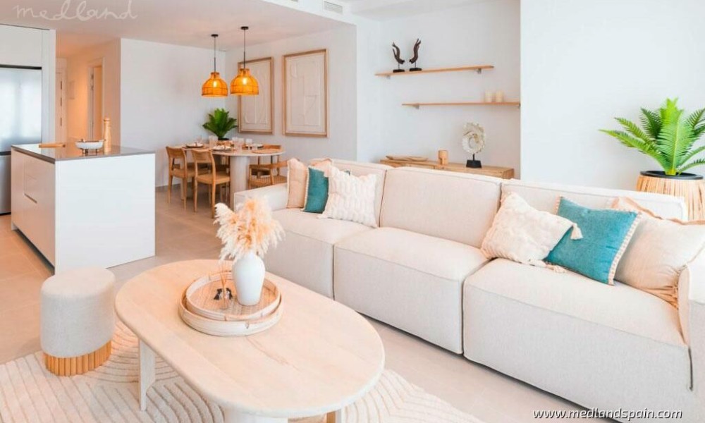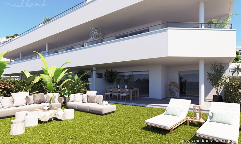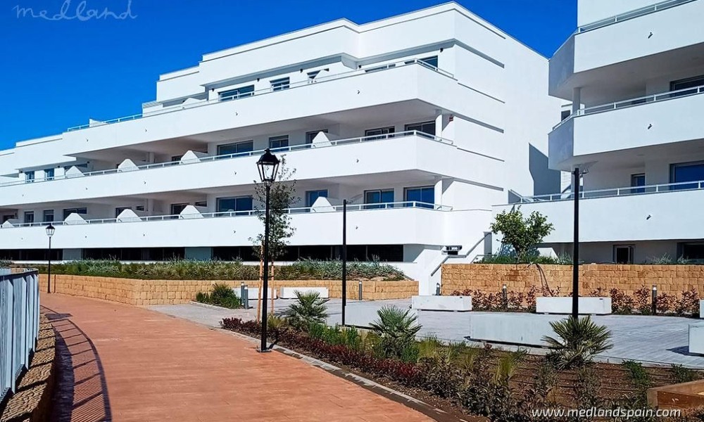 New development of apartments and terraced villas close to Estepona. The complex is in a peaceful location, with Estepona and Marbella only 15 and 25 minutes away, respectively. All the necessary services are within walking distance, like supermarkets, schools, health centre, restaurants, and leisure activities. It is the perfect place for outdoor sports enthusiasts, with several golf courses surrounding the complex, and water sports activities available at the beach, which is only 7 minutes away by car. The complex is close to the fantastic AP-7 and A-7 motorways, making it easy to reach Malaga Airport and Gibraltar Airport in less than an hour.Apartments with 2 or 3 bedrooms available in various models: ground floor models, mid-floor models, penthouses, and penthouses on two floors. The project als includes terraced villas on two floors, with 2 bedrooms, 2 bathrooms, a guest toilet, and two terraces. All the properties present an open plan living area, combining the kitchen, dining area and lounge into a large space with access to the terrace.