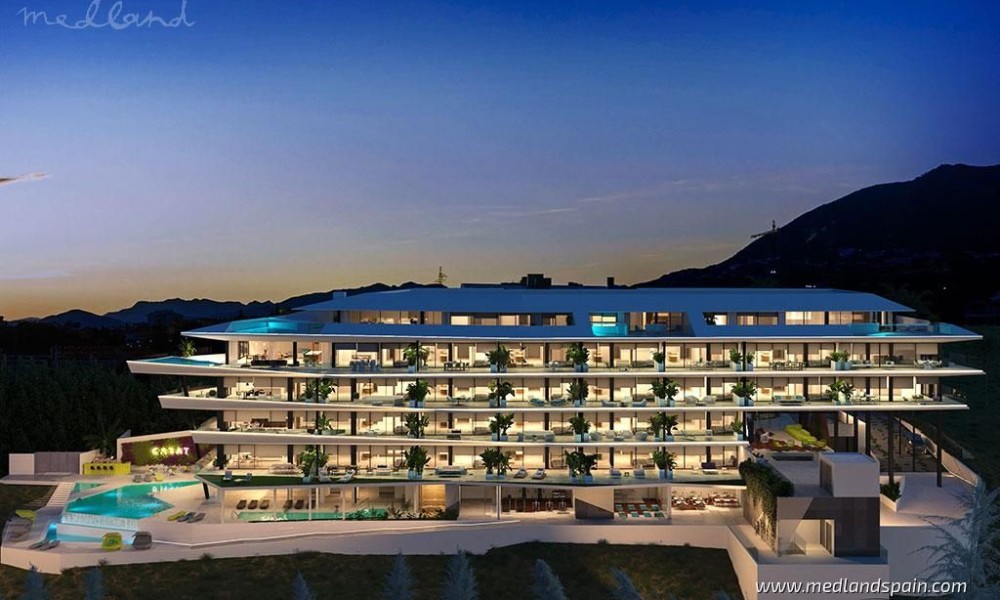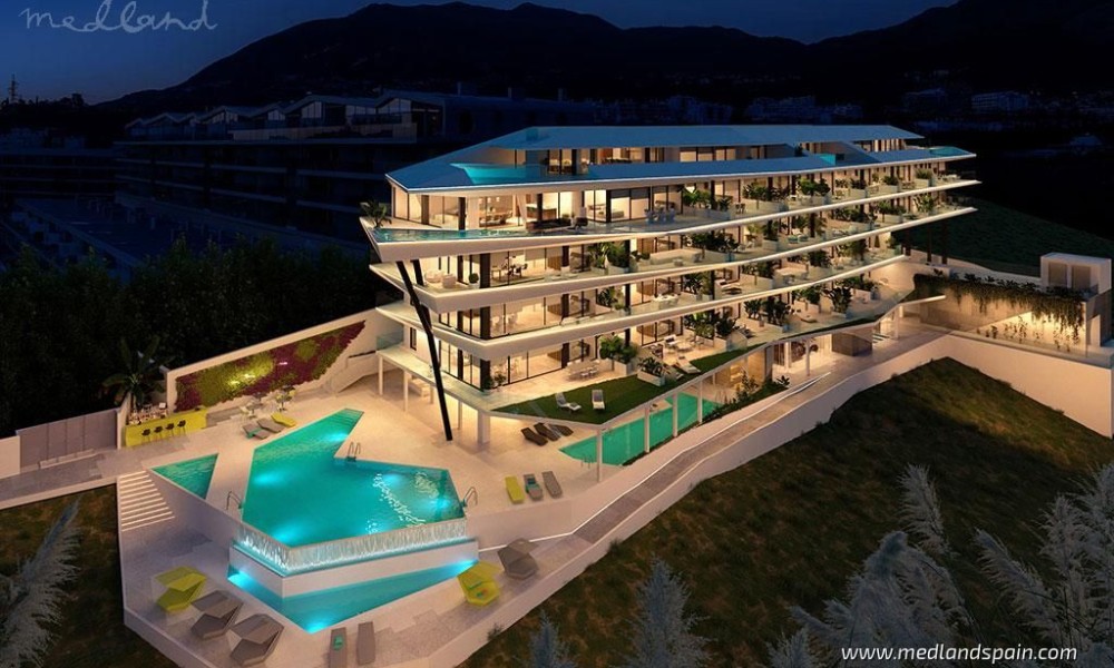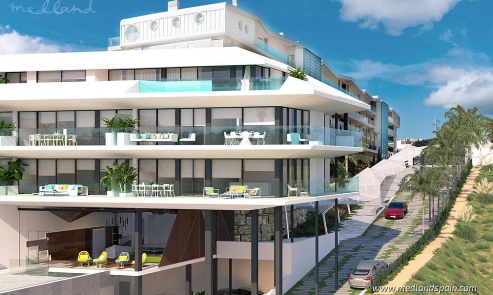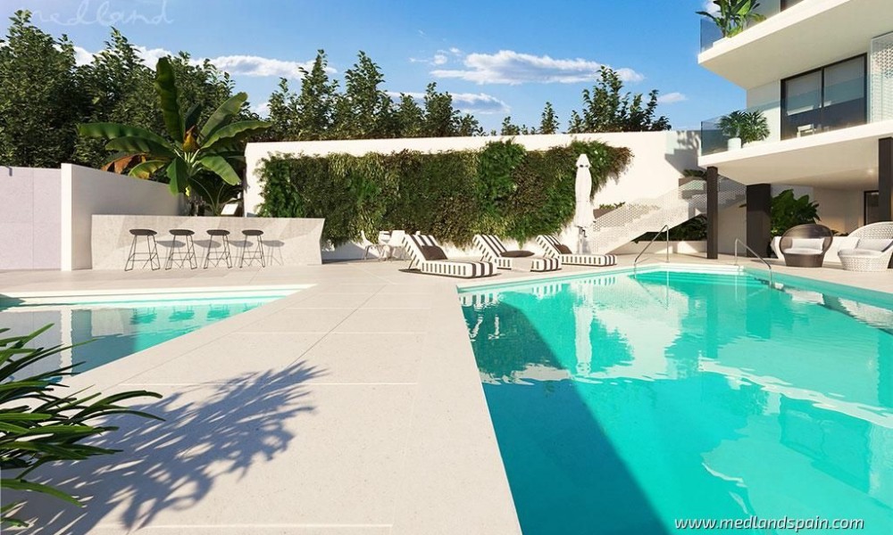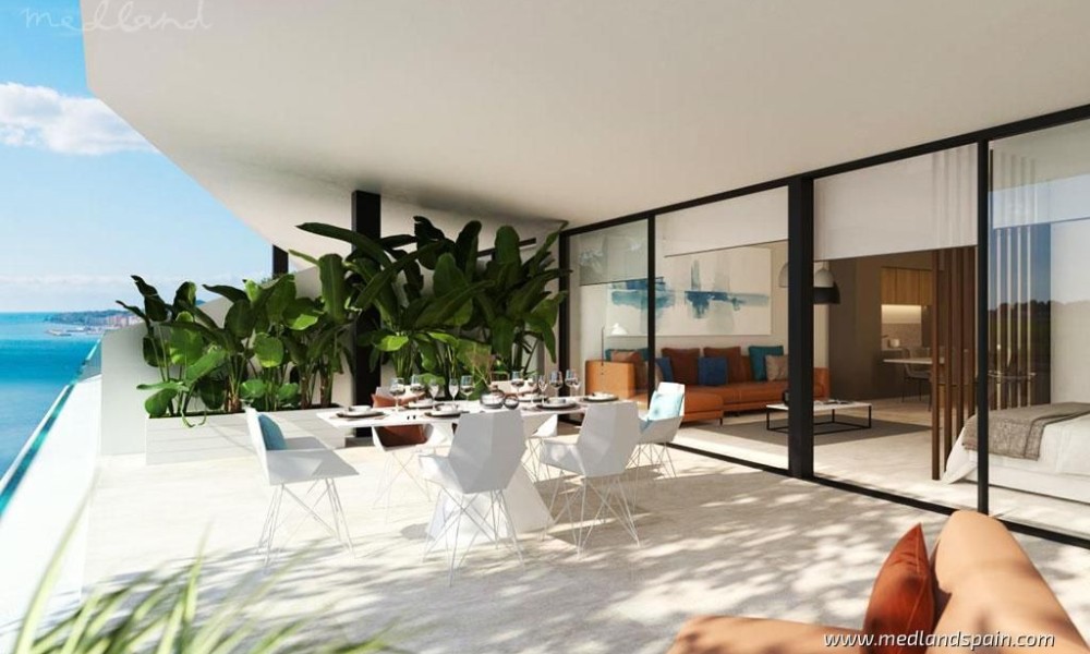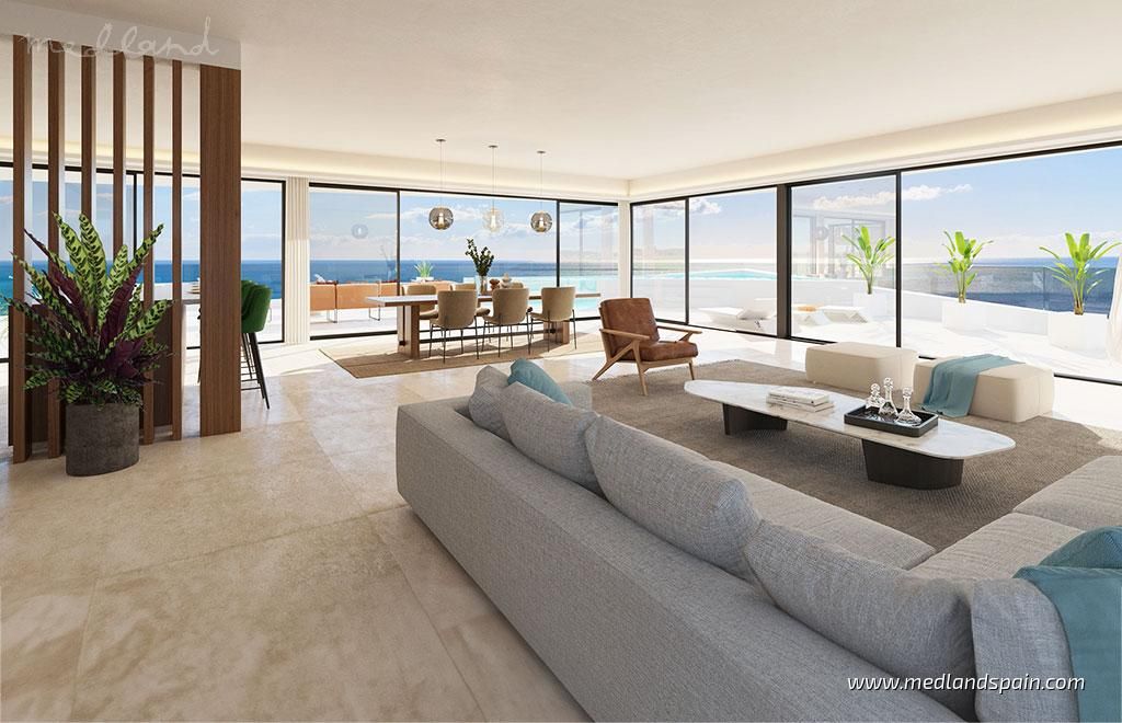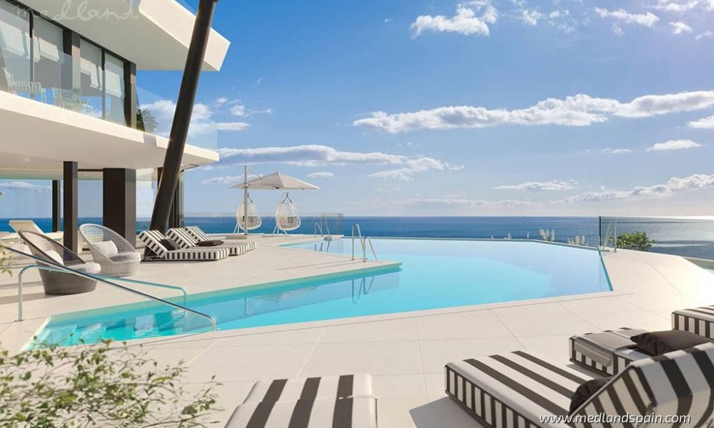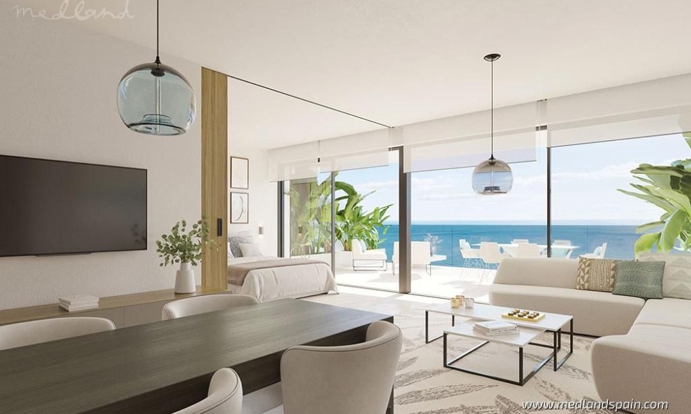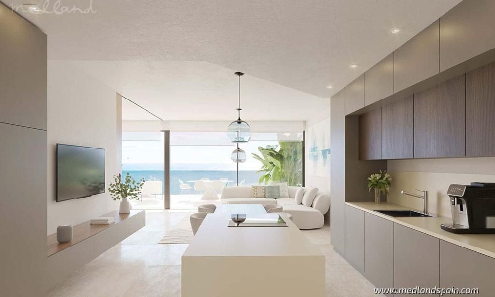 Modern, luxury apartments with magnificent sea views, within an exclusive resort in Fuengirola. An ideal location, only 250m from the beach and halfway to the most important cities of the Costa del Sol, namely Malaga and Marbella. The complex is close to a variety of daily amenities, like supermarkets, sports areas, a health centre, excellent schools for all ages, as well as unbeatable dining, commercial, and leisure experiences. Ideal for golf enthusiasts, with several courses in the area, including El Chaparral Golf Club, where the residents of this complex receive preferential treatment. The excellent road network connects the complex with other tourist areas, like Fuengirola in only 10 minutes, Benalmádena and Puerto Marina in 20 minutes, as well as Marbella and Puerto Banús in 30 minutes. Malaga International Airport is only 20 minutes away by car.The project presents exclusive apartments with 2 or 3 bedrooms, and penthouses with 3 or 4 bedrooms and a private pool. All the apartments offer panorama sea views, and present an open plan living area, combining the kitchen, dining area and lounge, with access to the terrace.