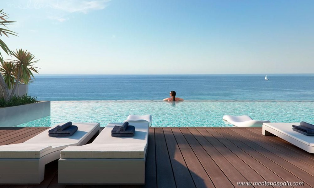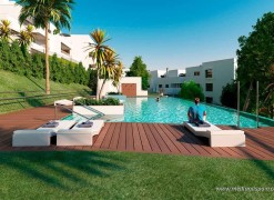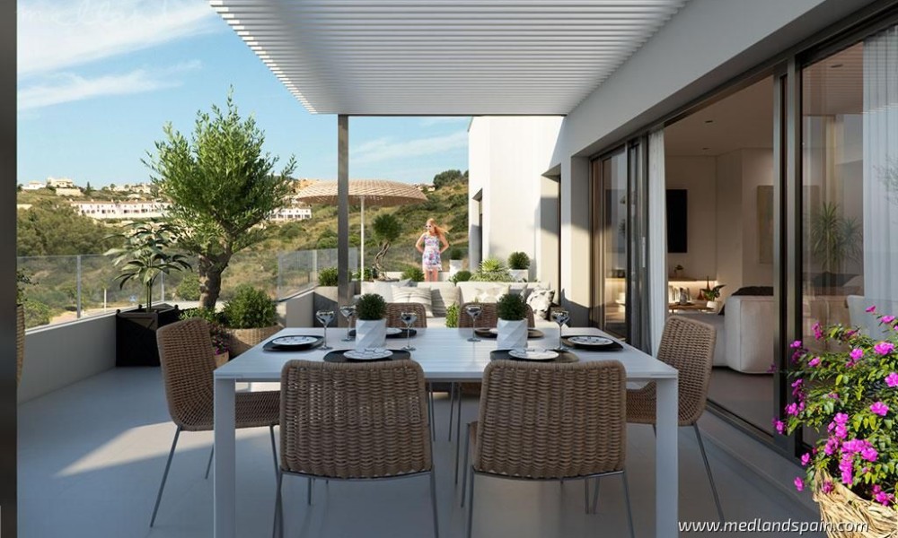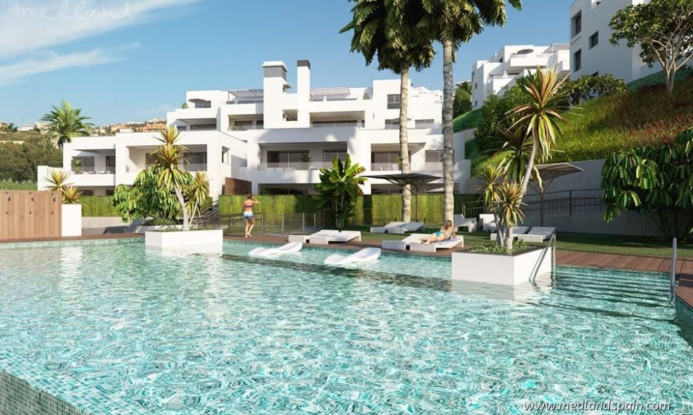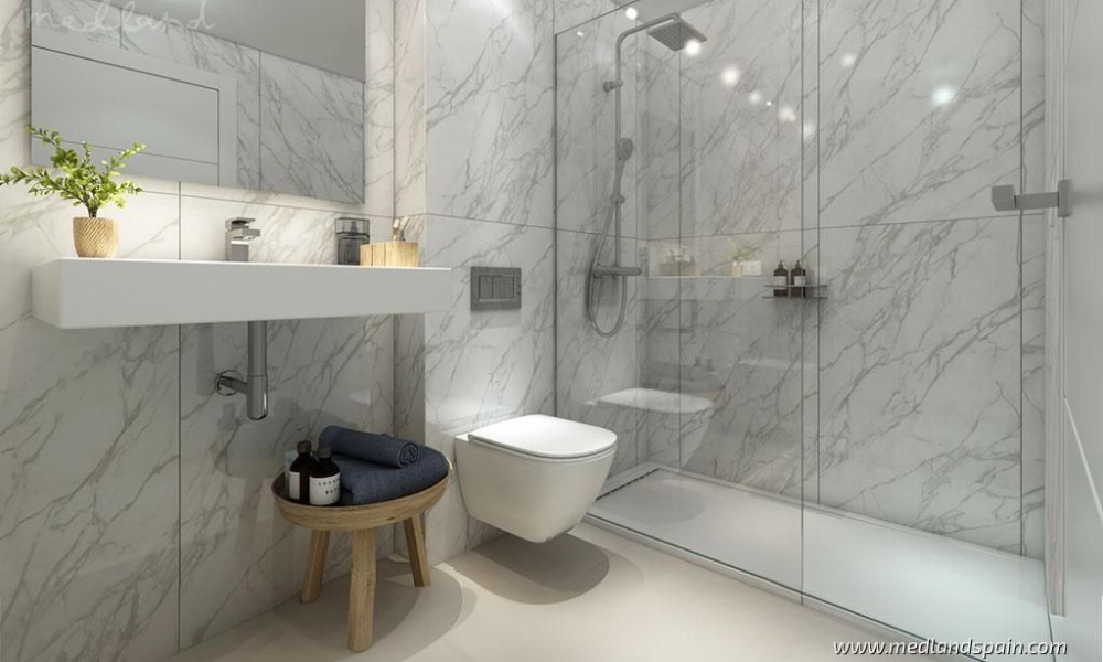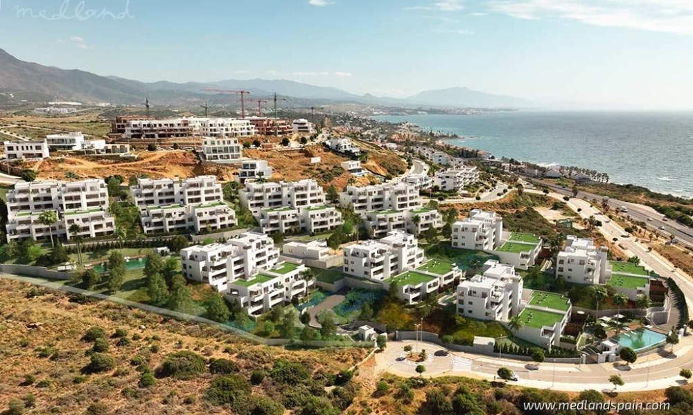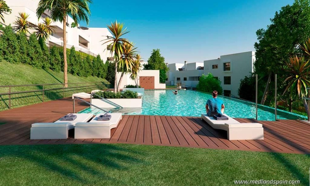 New apartment project, less than 10 minutes’ walk to the beach in Casares. This town in Malaga is considered one of the most beautiful towns on the entire Costa del Sol, being a typical white Andalusian town, with its picturesque streets and beautiful white houses. The area has gained renown in recent years thanks to its exquisite selection of golf courses, restaurants, and all types of services, as well as its long and spectacular beaches. The project is very well connected by road, with the AP-7 and A-7, which allows for quick access to other tourist areas, like the centre of Estepona in 15 minutes, Sotogrande in 25 minutes, and Marbella and Puerto Banús in 30 minutes. Malaga airport is 55 minutes away, and Gibraltar airport is only 40 minutes from the project.The complex presents modern apartments with 1, 2, 3 and 4 bedrooms, available in various models: ground floor models with 2 bedroom and private garden and rear terrace/patio; mid-floor models with large terraces; and penthouses with 3 bedrooms, sea views and a private jacuzzi. The southeastern orientation of the apartments allows for a lot of natural light. The living area has an open plan design, combining the kitchen, dining room and lounge into a large space with windows that open onto the outdoor area. The indoor and outdoor areas merge into one, making it possible to fully enjoy the fantastic climate on the Costa del Sol all year round.