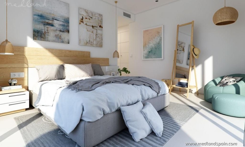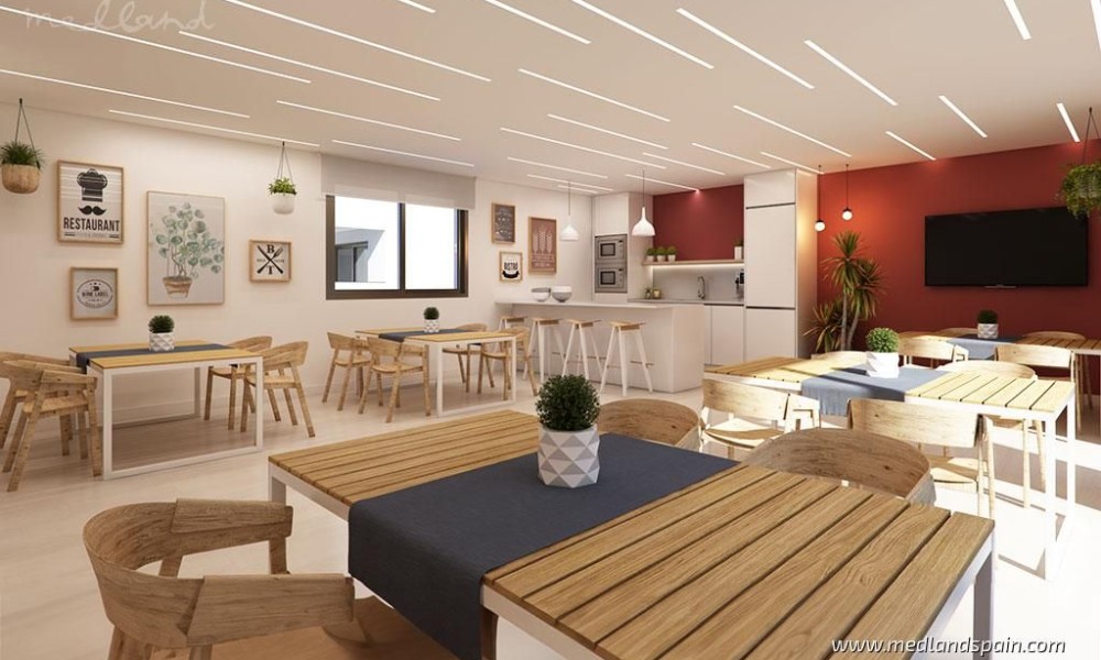 The master bedroom has access to the terrace and an en-suite bathroom, except in the 1-bedroom model which has a separate bathroom. Depending on the orientation and height of the apartment, many also enjoy sea views.These apartments are built to the highest standards and include a fully equipped kitchen with appliances, ducted air conditioning system (hot/cold), underfloor heating in the main bathroom, a storage room, and a parking space in the community garage with pre-installation for a charging station for electric vehicles.The complex is completely closed with access control to guarantee the safety of its residents and presents fantastic community facilities, especially the large garden areas with many pedestrian paths and two outdoor pools with night lighting, a gourmet-coworking room, a room for relaxation with a heated indoor pool, a gym, a Zen area, a reading area, an on-site defibrillator, as well as community showers and toilets. The complex also includes facilities for children, like a playground next to the outdoor gym equipment area. Residents will also have Smart Mailboxes at the entrance, which allow them to receive products and services without having to be at home.