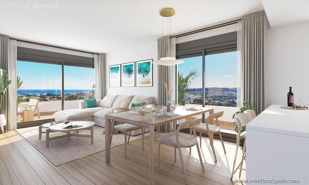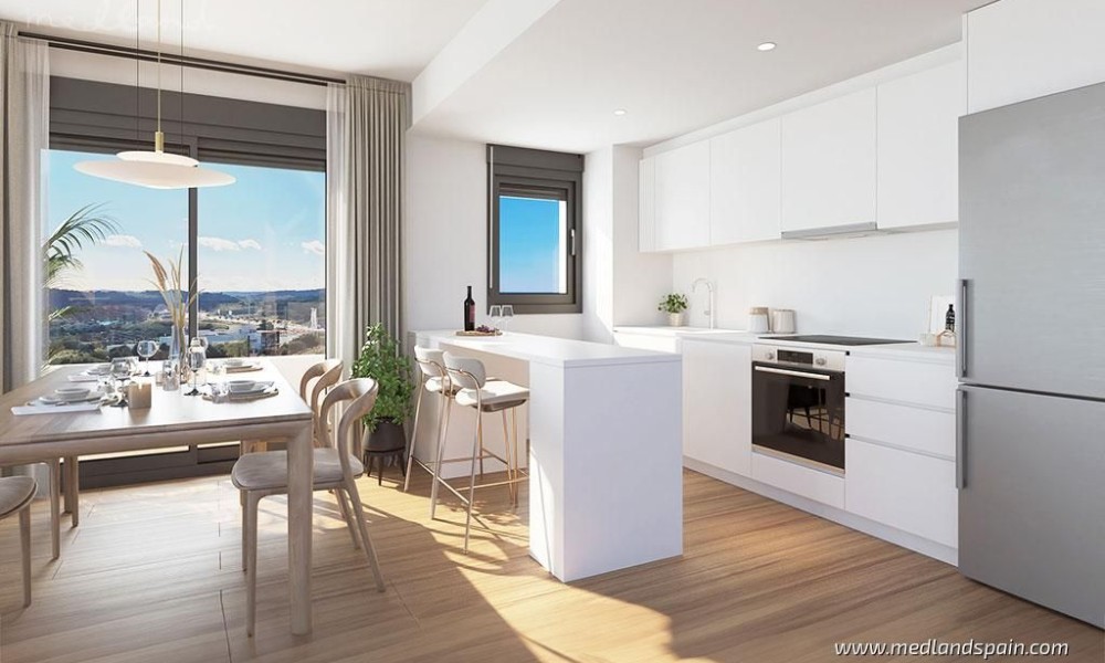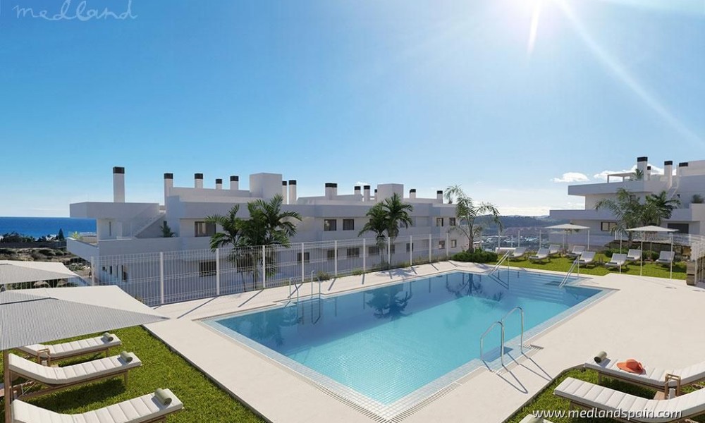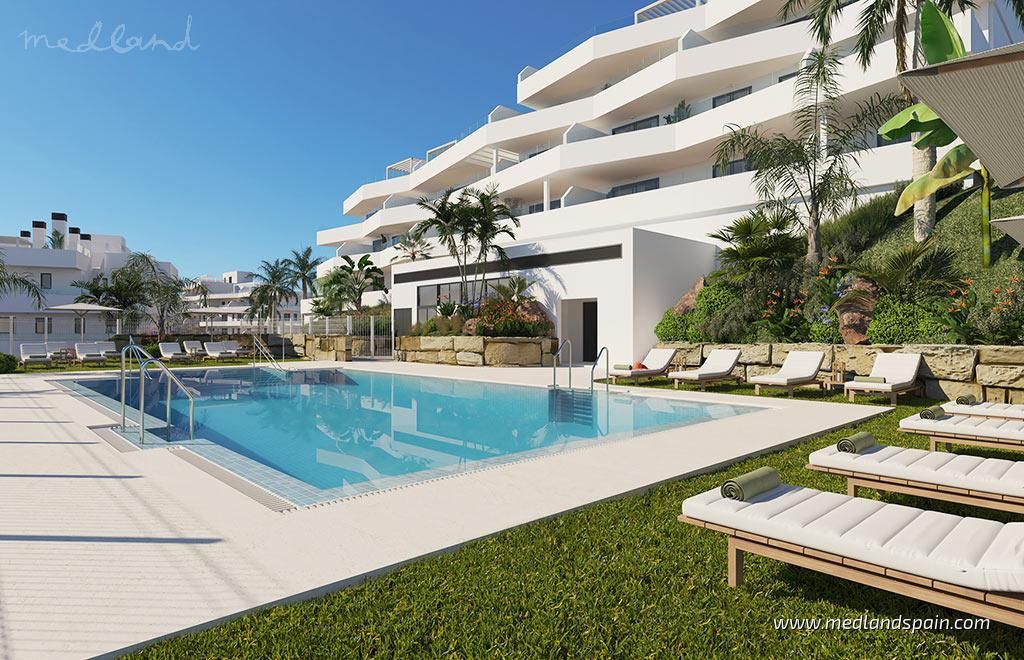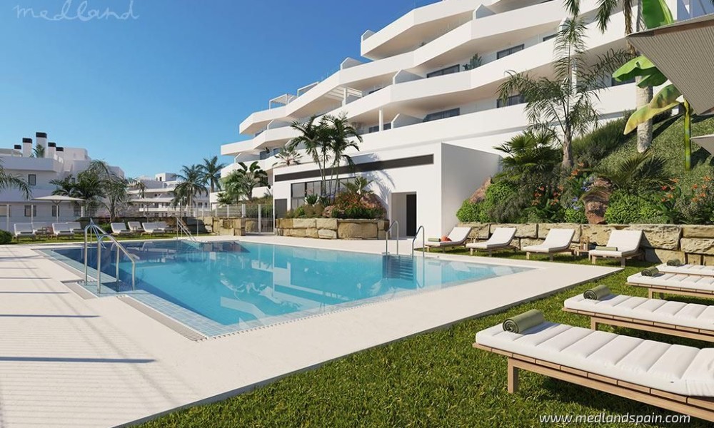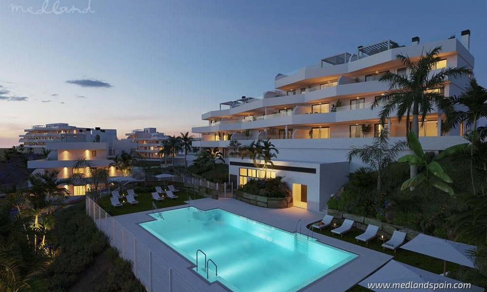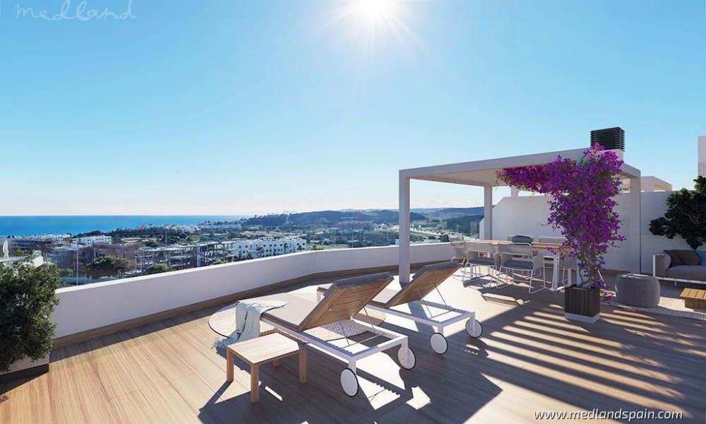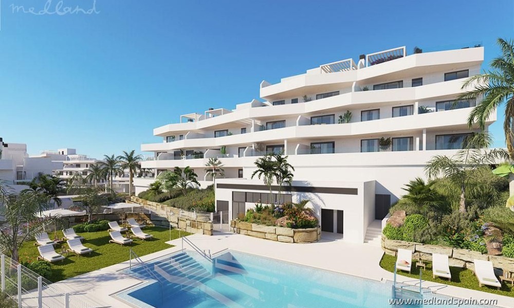 Apartment complex, in a privileged area of Estepona, only 800m from the beach. Only 10 minutes’ drive from the complex is the beautiful historic centre of Estepona, with its typical white houses, as well as a complete selection of services available in this important city of the Malaga province. For golf enthusiasts there are a variety of courses within a 10-minute driving radius, like Estepona Golf, Valle Romano Golf and Doña Julia Golf. The good road connection makes it possible to reach the vibrant city of Marbella and Puerto Banús in less than 30 minutes, as well as Malaga with its international airport in one hour.The project presents exclusive apartments with 2 or 3 bedrooms and 2 bathrooms, available in different models: ground floor models, with or without a private garden, mid-floor models with large terraces, and penthouses with a private solarium. Most of the apartments have beautiful sea views, except for some models on the ground floor.