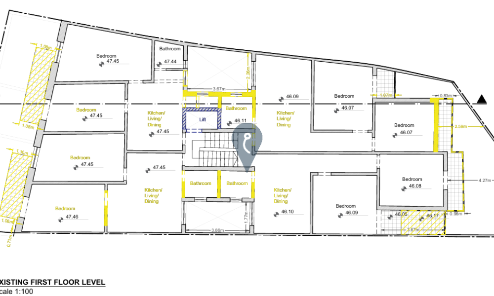 This modern development offers high-quality finishes throughout, with construction fully completed excluding bathrooms and internal doors, allowing buyers to customize these areas to their personal taste.