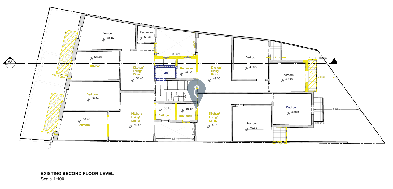 This modern development offers high-quality finishes throughout, with construction fully completed excluding bathrooms and internal doors, allowing buyers to customize these areas to their personal taste.
