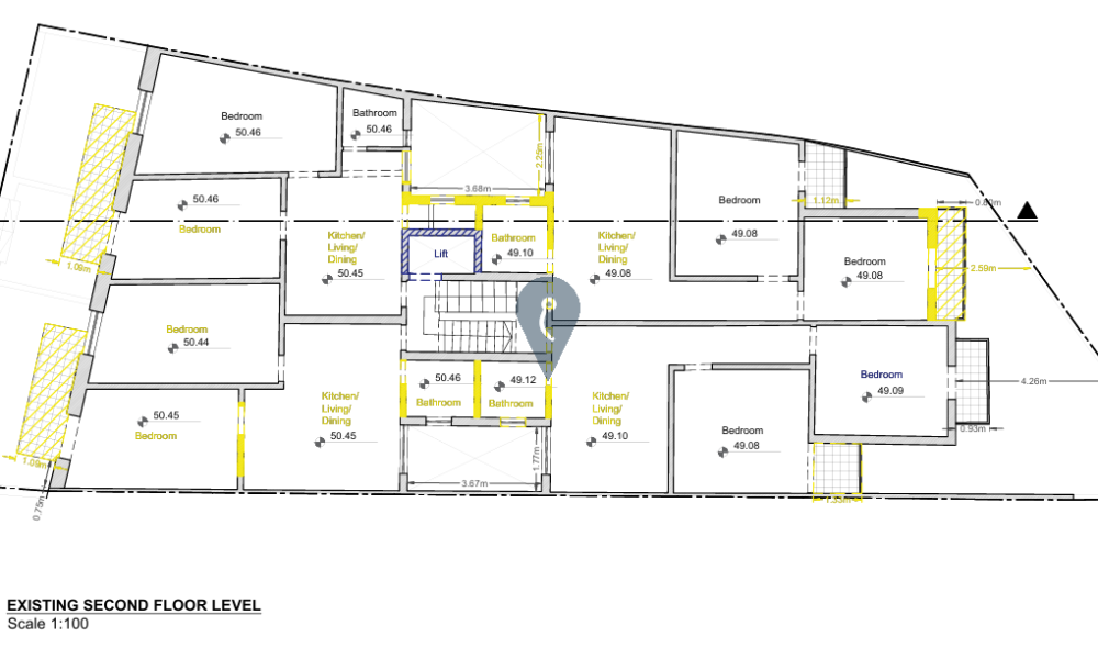 This modern development offers high-quality finishes throughout, with construction fully completed excluding bathrooms and internal doors, allowing buyers to customize these areas to their personal taste.