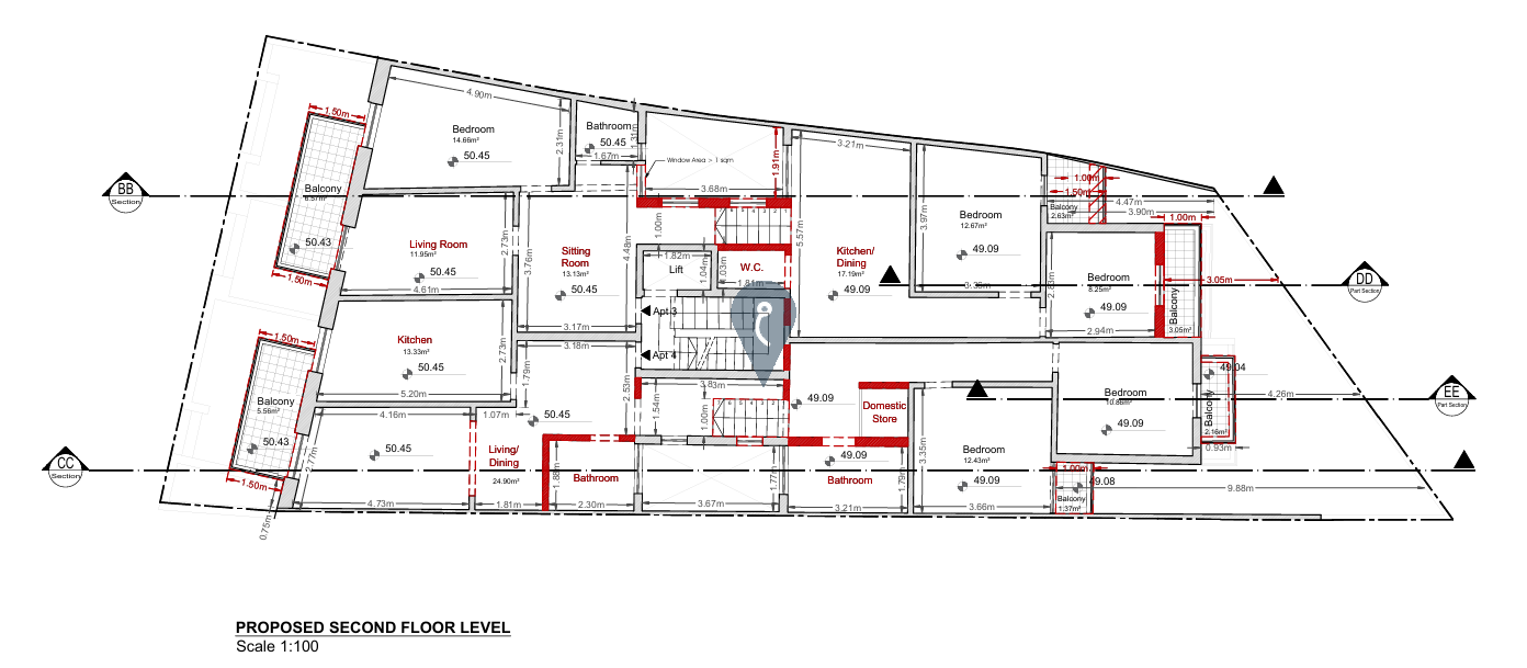 This modern development offers high-quality finishes throughout, with construction fully completed excluding bathrooms and internal doors, allowing buyers to customize these areas to their personal taste.