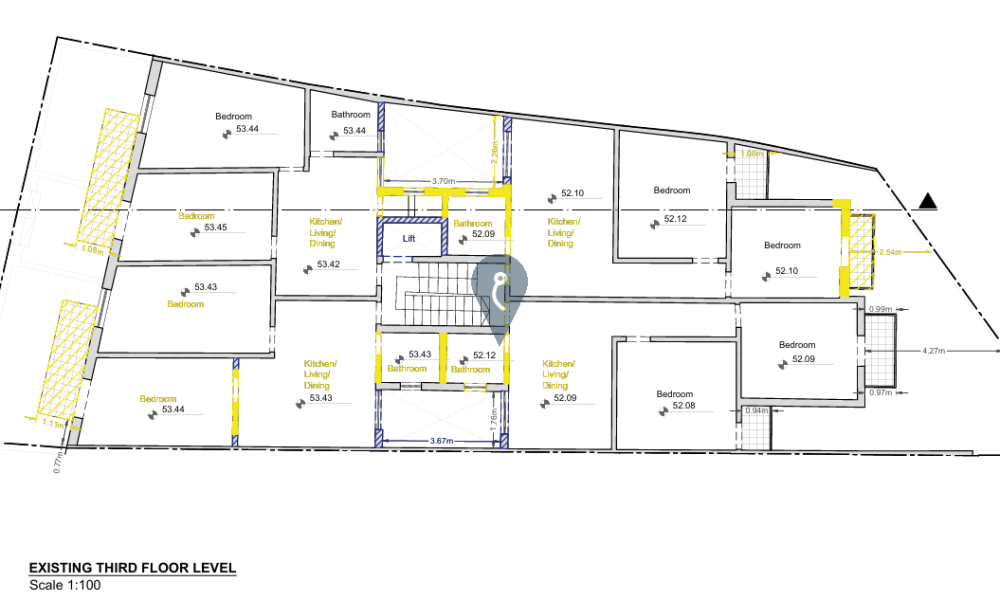 This modern development offers high-quality finishes throughout, with construction fully completed excluding bathrooms and internal doors, allowing buyers to customize these areas to their personal taste.