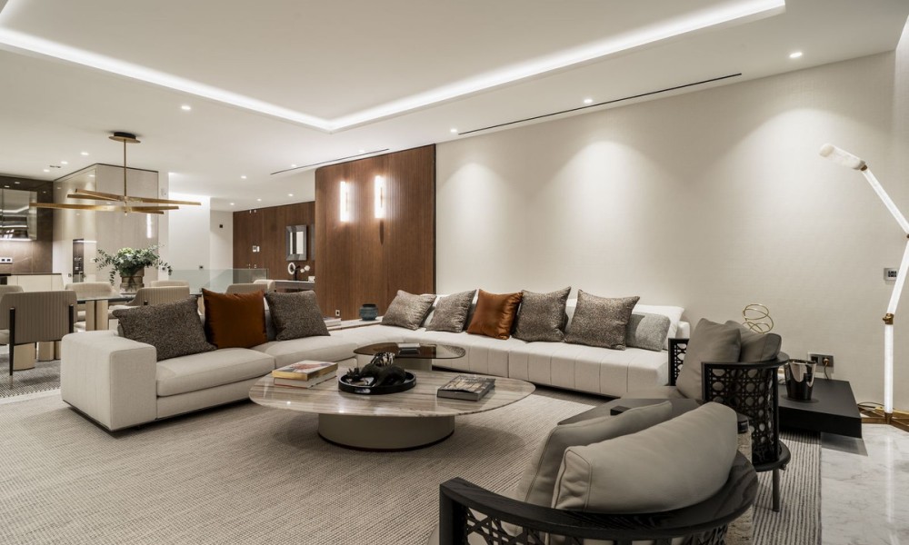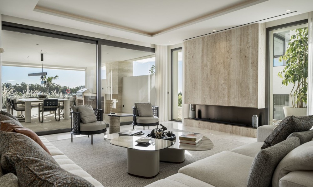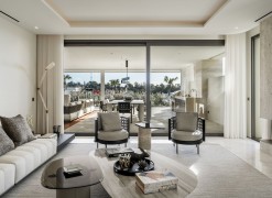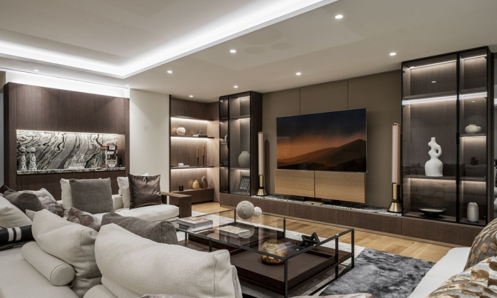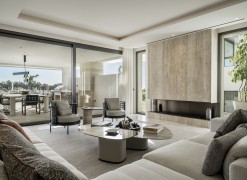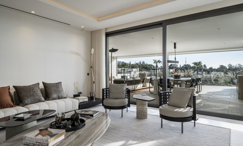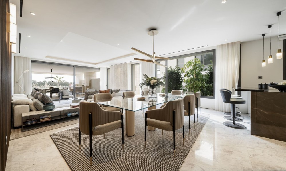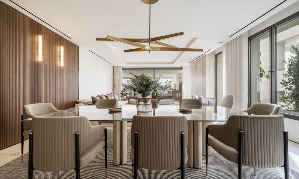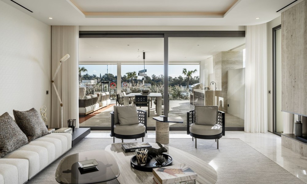 In the exclusive Golden Mile lies a unique development that combines timeless residences furnished by FENDI Casa with unparalleled amenities, creating a resort-style living experience. Just a short stroll from Marbella Club, Puente Romano and the beach, this refined community offers 24-hour concierge, top-tier security, a social hub with a spa, kids’ club, and indoor pool, along with a state-of-the-art indoor sports centre featuring a basketball court, Technogym training equipment, golf simulator, boxing, yoga, and Pilates machines. Outside, two tennis courts, two paddle courts, a pickleball court, and various pools – some heated, one for training and another for relaxation – invite you to unwind under the Mediterranean sky. Privacy and social connection find the perfect balance.Inside, a bespoke duplex features floor-to-ceiling windows and five spacious en-suite bedrooms-three on the main level and two on the lower floor-with a separate entrance from the garage for enhanced circulation and privacy. The open-plan kitchen, seamlessly integrated with the living area, extends to a generous terrace furnished by Minotti, which includes a heated chill-out zone, a dining area, and a fully equipped outdoor kitchen. Stunning views stretch over the pool, with the Mediterranean to one side and La Concha to the other. Automatic curtains provide an added layer of seclusionEvery corner pays homage to exquisite details, from Fendi-designed wardrobes and kitchen furnishings to custom wooden panels on the walls, Travertine marble bathrooms, and high-end finishes.