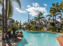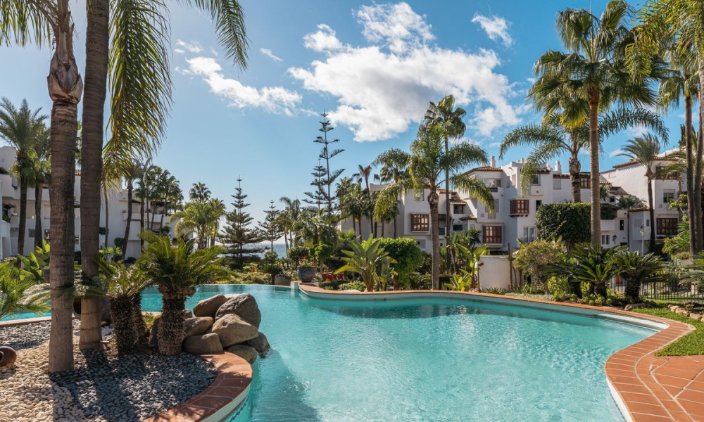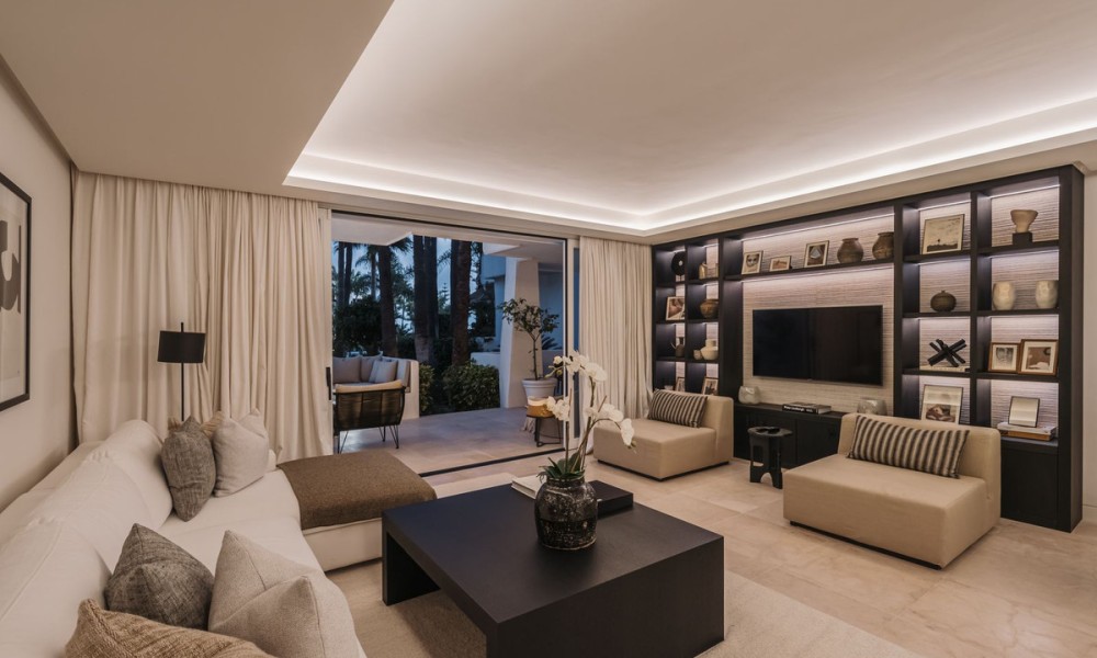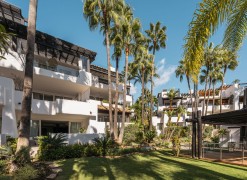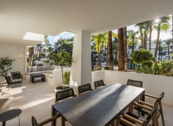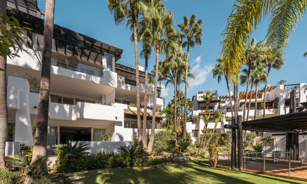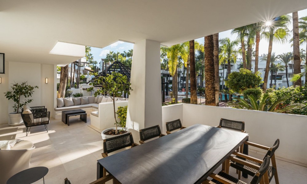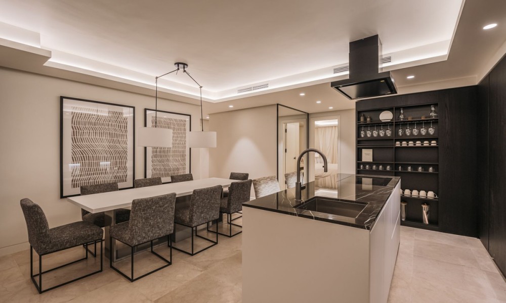 Luxurious three-bedroom apartment offers an exceptional living experience in one of Marbella’s most prestigious areas. Combining timeless elegance with modern comfort, this residence is perfectly suited for those seeking a refined yet welcoming atmosphere. With a southeast-facing orientation, the 188m² property boasts a thoughtfully designed open-plan layout. Upon entering, you are greeted by a state-of-the-art kitchen featuring custom oak cabinetry and premium Gaggenau appliances. The kitchen flows seamlessly into a stylish lounge area, which opens onto a spacious 48m² terrace. This outdoor space is perfect for alfresco dining and relaxation, offering tranquil views of the community pool.Each of the three bedrooms is designed with privacy and comfort in mind, featuring en-suite bathrooms finished with high-quality stone and bespoke wood details. These spaces exude a modern yet timeless aesthetic. Recently renovated in 2023, the apartment blends contemporary amenities with the charm of its original construction, delivering the best of both worlds.Located in an exclusive neighborhood along Marbella’s Golden Mile, this property provides unparalleled access to pristine beaches, world-class dining, and upscale recreational facilities.