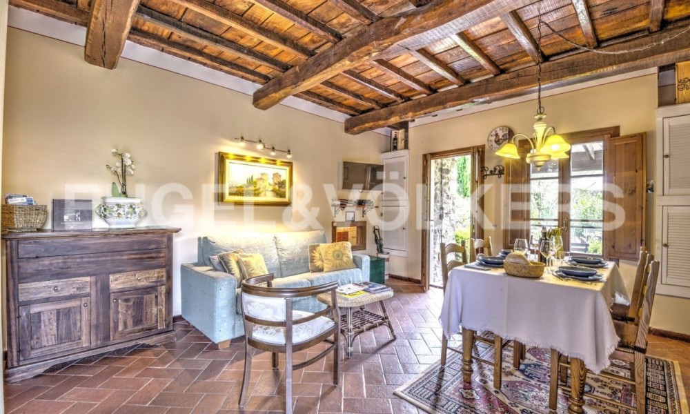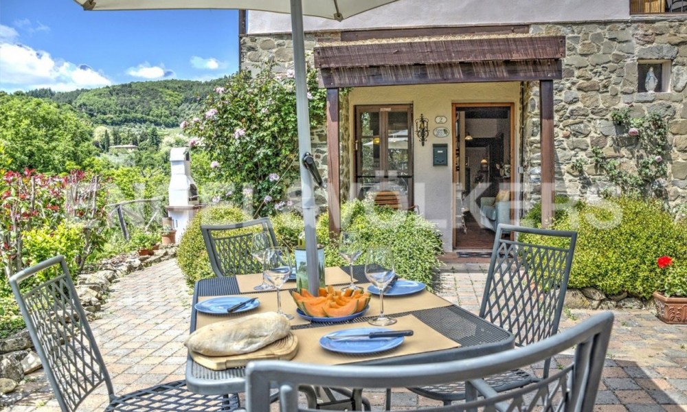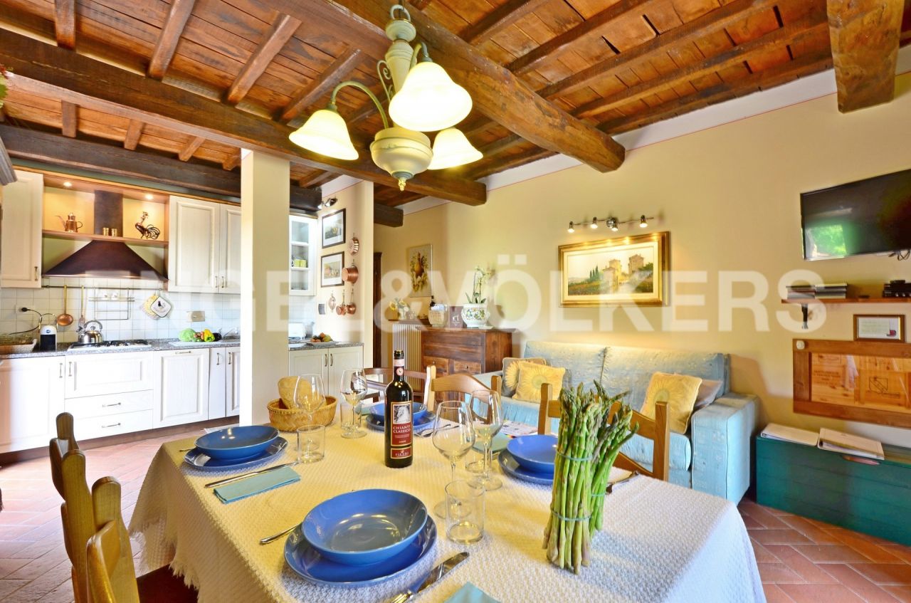 LOVELY APARTMENT LOCATED IN A SPLENDID MEDIAEVAL HAMLET, owned from Albizzi family and restored in the total respect of the Tuscan architecture style. This apartment is in the lower part of the Borgo and thanks to this it also has the better view, without any intrusions. You will enter the property from its own resede that leads to the living area with dining table and kitchen corner and a door to the terrace. From the aisle you will find the bathroom, the small bedroom, the master bedroom and the second bathroom both with windows and shower.