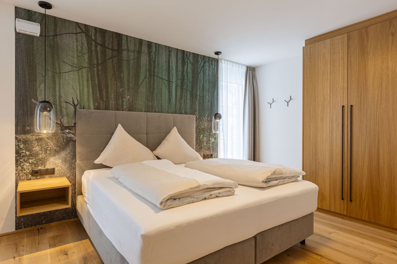 – Terrace: Wonderful outdoor seating area with breathtaking mountain panorama – ideal for relaxing after an eventful day.The entire flat impresses with a harmonious combination of high-quality materials, warm home textiles and a sophisticated lighting concept that creates a cosy atmosphere.