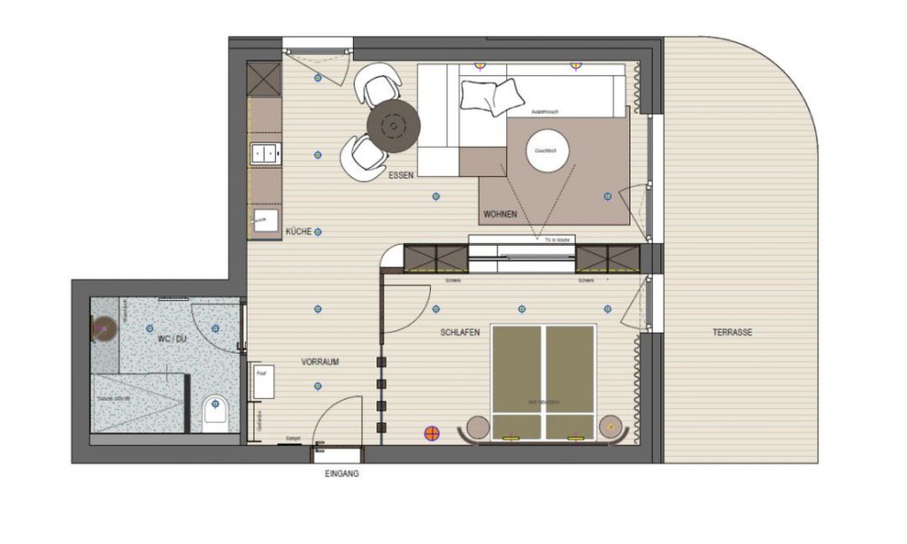 Flat 01 is located on the ground floor and has a living space of 48.37 m². There is a cloakroom directly after the entrance. This unit has a spacious eat-in kitchen and a bedroom. In addition to a spacious terrace, the one-bedroom flat also has a garden area.The property on offer is a tourist investment which is rented out to changing guests via a renowned operating company.Net purchase price € 425,000.00