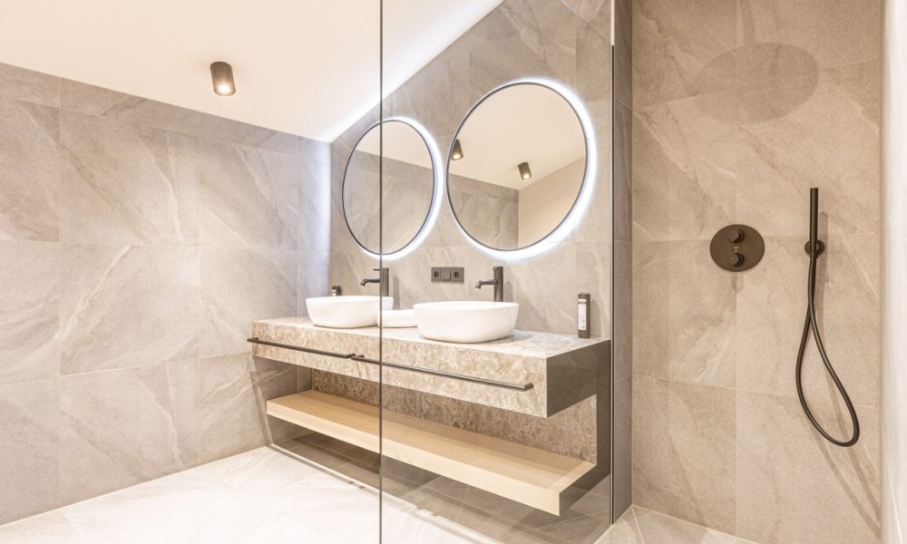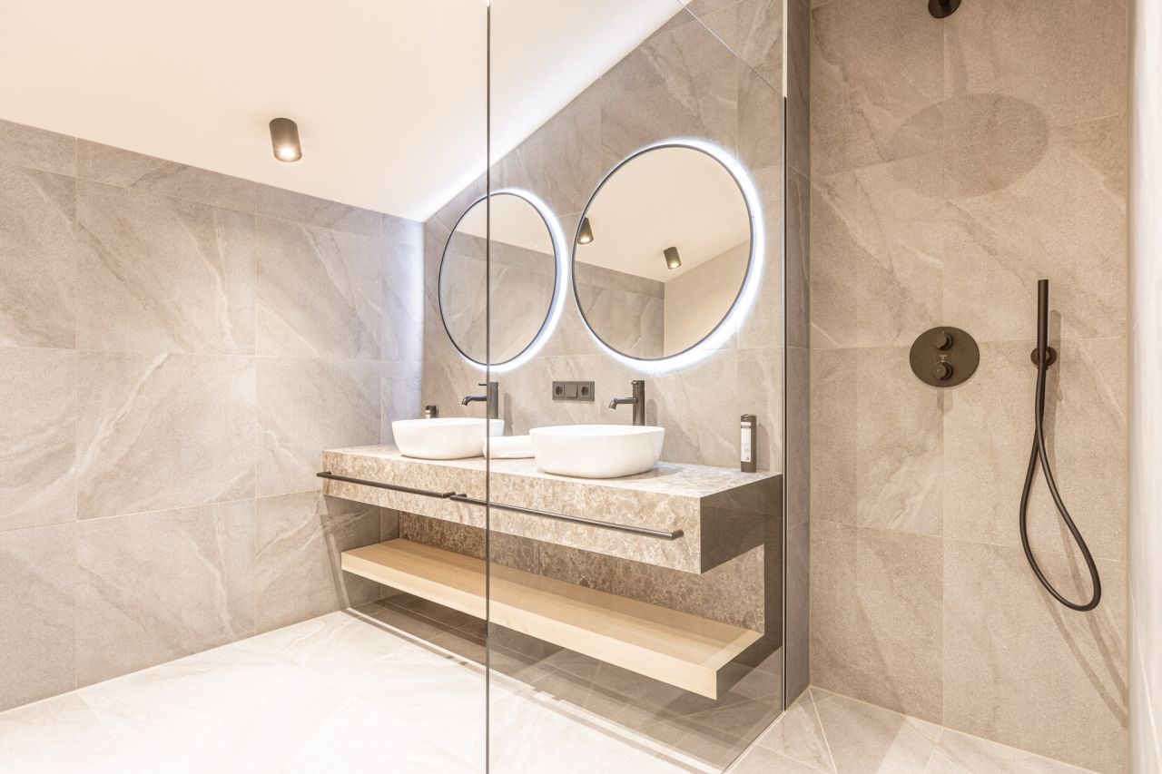 In addition to an entrance area with reception and a lounge area for guests, the flat house offers an exclusive wellness area.
