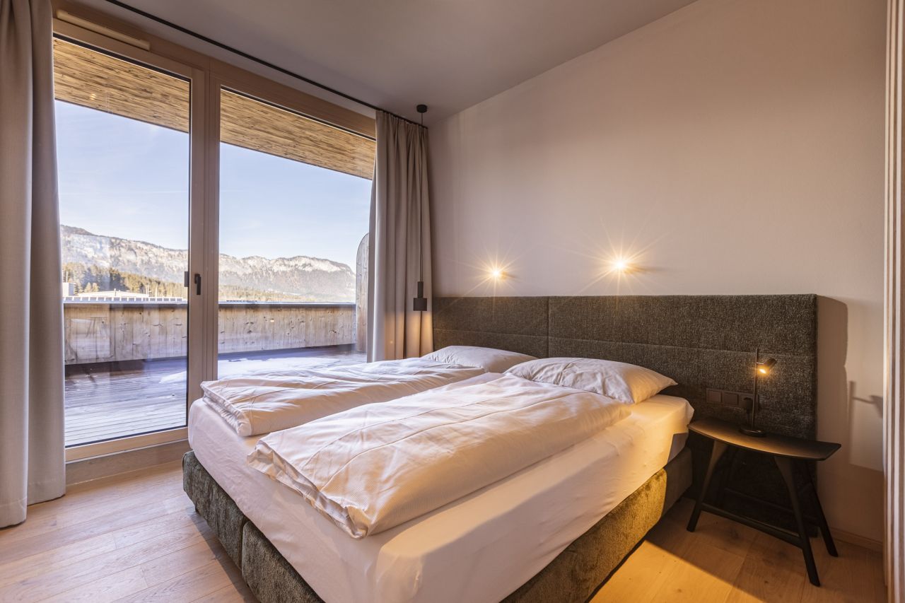 Oberndorf bei Kitzbühel is a sunny jewel in the Leukental valley on the Kitzbüheler Ache river with a population of 2,245. The village is surrounded by the Kitzbühel Alps with a fantastic view of the sublime Kitzbüheler Horn to the south-east and the mighty Wilder Kaiser to the north-west. The flats are being built at Alfons-Walde- Weg 1 and the location is a real highlight. Right next door is the village’s own rustic swimming pool Bichlbachbad and the tennis court. The ski lift in Oberndorf itself is in the immediate vicinity. The ski areas of St. Johann in Tirol and Kitz Ski, with the famous Streif, can also be reached in just a few minutes. There is a view of the famous Kitzbüheler Horn and the Wilder Kaiser. The house is south-east facing.There are countless activities in every season and for every age group, which can be started directly from the village. From hiking to climbing, from challenging ski tours to peaceful cross-country skiing tours, from great shopping opportunities to a cosy coffee. A lovely mix of nature, lifestyle, tradition and memorable moments awaits you here in Oberndorf.