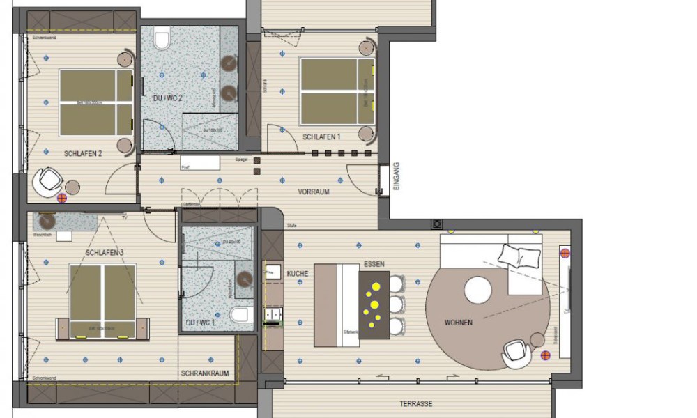 Flat 20 is located on the third floor and has a living space of 106.99 m². The unit has three bedrooms, two bathrooms and a very spacious eat-in kitchen. Two terraces also round off this attractive offer.The property on offer is a tourist investment which is rented out to changing guests via a renowned operating company.Net purchase price € 1,355,000.00