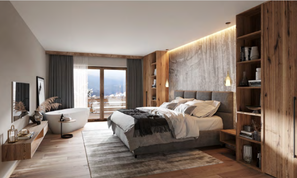 In the heart of the Stubai Valley, in the picturesque village of Fulpmes, a flagship luxury apartment complex with 22 units is being built.Traditional Tyrolean architecture is combined with exclusive design and the most modern furnishings in the rooms to create a new concept of the classic alpine chalet.The Top 3 extends over 93.18 m² and is located on the ground floor.The well-thought-out living area offers plenty of space for spending evenings together and exchanging stories of the action-packed day during your skiing holiday or summer holiday. In addition, you will have access to the romantic terrace with a view of the region’s mountains. The living room also features a fully equipped brand-name kitchen that leaves nothing to be desired.