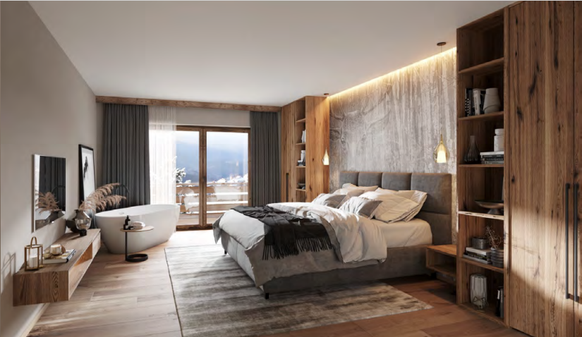 In the heart of the Stubai Valley, in the picturesque village of Fulpmes, a flagship luxury apartment complex with 22 units is being built.Traditional Tyrolean architecture is combined with exclusive design and the latest in room facilities to create a new take on the classic Alpine chalet.Top 21 extends over 72.15 m² and is located on the top floor of the building.The well-thought-out living area offers plenty of space to spend evenings together and chat about the action-packed day during your skiing holiday or summer holiday. You also have access to the romantic terrace with a view of the region’s mountains. The living room also features a fully equipped kitchen that leaves nothing to be desired.
