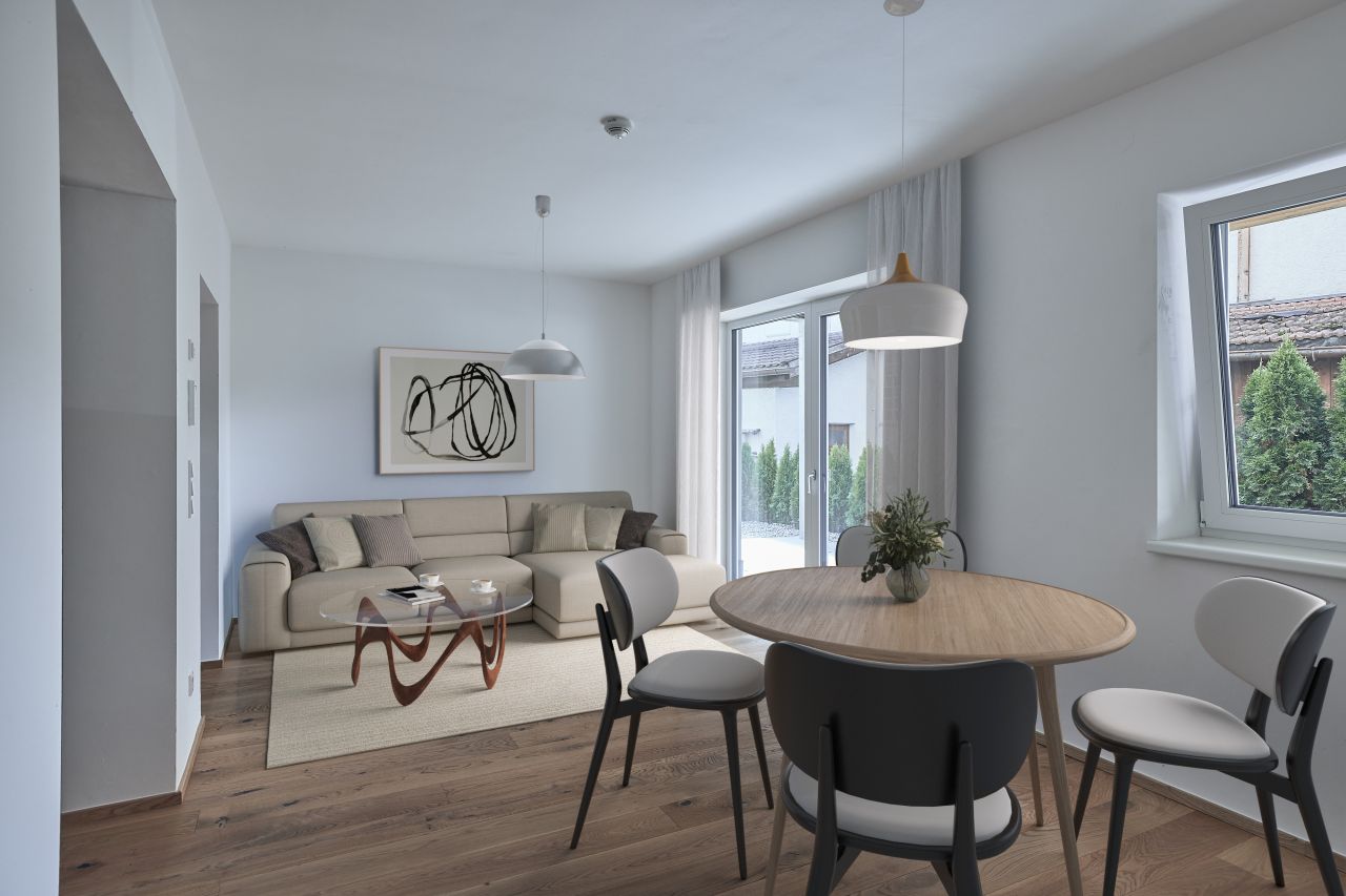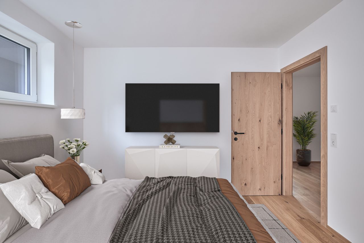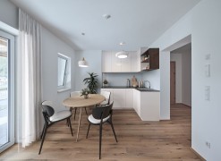 Of course there are car parking spaces around the house. Flat WP 2 is located on the ground floor of the modern residential complex and boasts high-quality furnishings with a special focus on cosiness.