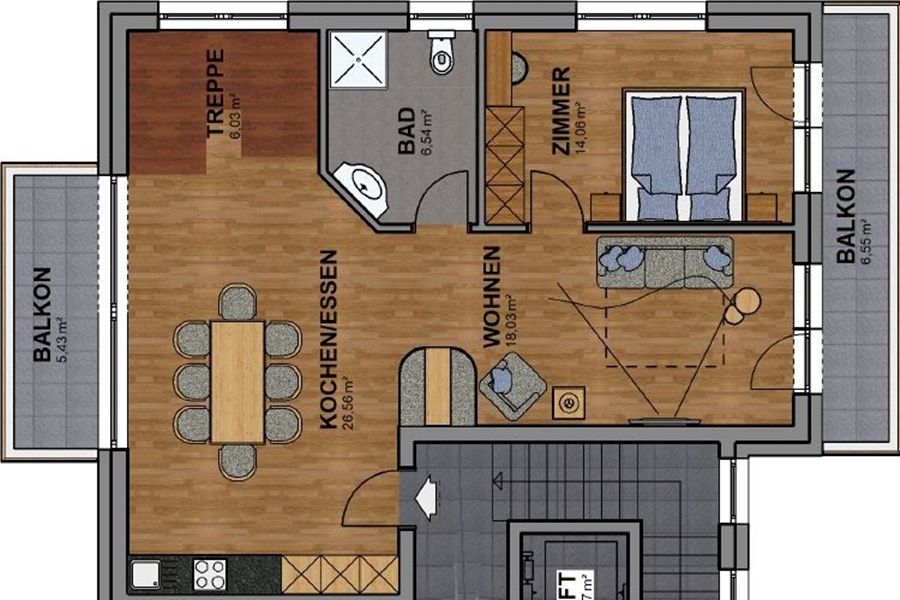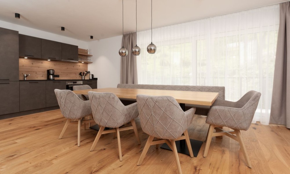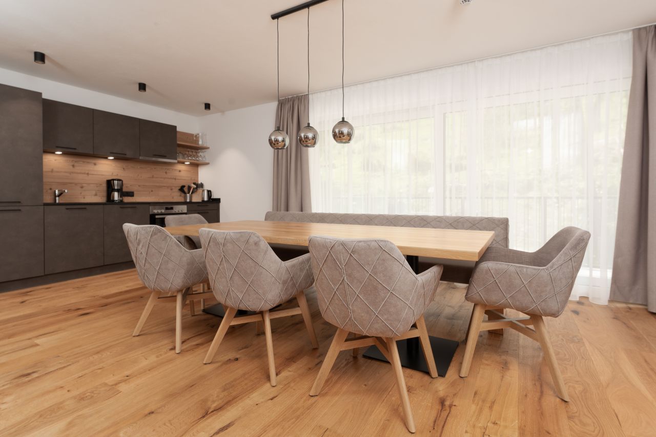Discover the A CASA Amethyst – your charming and cosy apartment house in Sölden, right on the ski slope and just a few steps from the lift to the Gaislachkogel middle station. Nestled in the awe-inspiring natural setting of the majestic Alps, this retreat offers you the perfect base in one of the world’s best ski and hiking areas. If you are dreaming of a tranquil escape that offers both Alpine comfort and close proximity to nature, then A CASA Amethyst is your ideal choice.Our six lovingly furnished Alpine-style apartments exude a warm, welcoming atmosphere and allow you to step out onto the slopes right from your doorstep – without detours and right in the heart of Sölden. Whether you are looking for a place to relax or to enjoy time with family and friends, you will find the perfect environment here. Experience the distinctive atmosphere and create lasting memories in your own cosy apartment.The TOP 6 impresses with a living area of 139m² over two floors.On the lower floor, an open-plan living area with a spacious kitchen-diner (26.56 m²) offers plenty of room for cooking, eating and spending time together. The large window frontage creates a bright, inviting atmosphere and harmoniously connects the interior and exterior areas. The adjoining living area invites you to relax and linger, while the cosy bedroom offers a retreat for rest and recuperation.