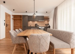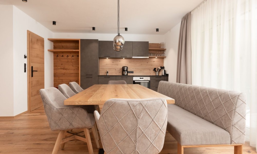Discover the A CASA Amethyst – your charming and cosy apartment house in Sölden, right on the ski slope and just a few steps from the lift to the Gaislachkogel middle station. Nestled in the awe-inspiring natural setting of the majestic Alps, this retreat offers you the perfect base in one of the world’s best ski and hiking areas. If you are dreaming of a tranquil escape that offers both Alpine comfort and close proximity to nature, then A CASA Amethyst is your ideal choice.Our six lovingly furnished Alpine-style apartments exude a warm, welcoming atmosphere and allow you to step out onto the slopes right from your doorstep – without detours and right in the heart of Sölden. Whether you are looking for a place to relax or to enjoy time with family and friends, you will find the perfect environment here. Experience the distinctive atmosphere and create lasting memories in your own cosy apartment.The TOP 7 impresses with a living area of 139m² over two floors.On the lower floor, an open-plan living area with a spacious kitchen-diner (26.56 m²) offers plenty of room for cooking, eating and spending time together. The large window front ensures a bright, inviting atmosphere and creates a harmonious connection between the interior and exterior. The adjoining living area invites you to relax and linger, while the cosy bedroom offers a retreat for rest and recuperation.