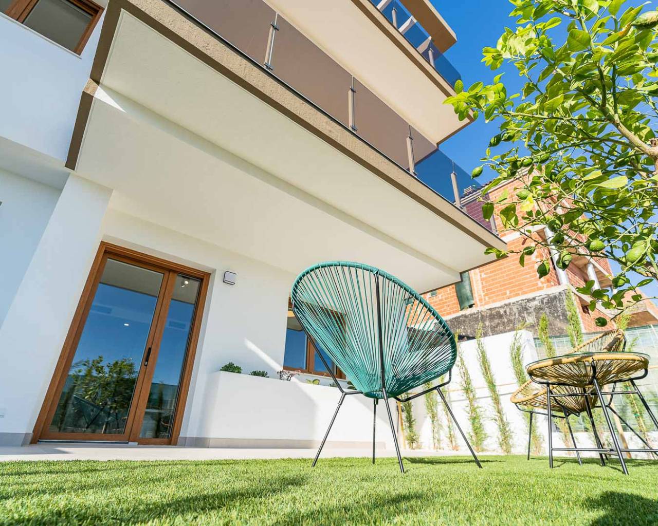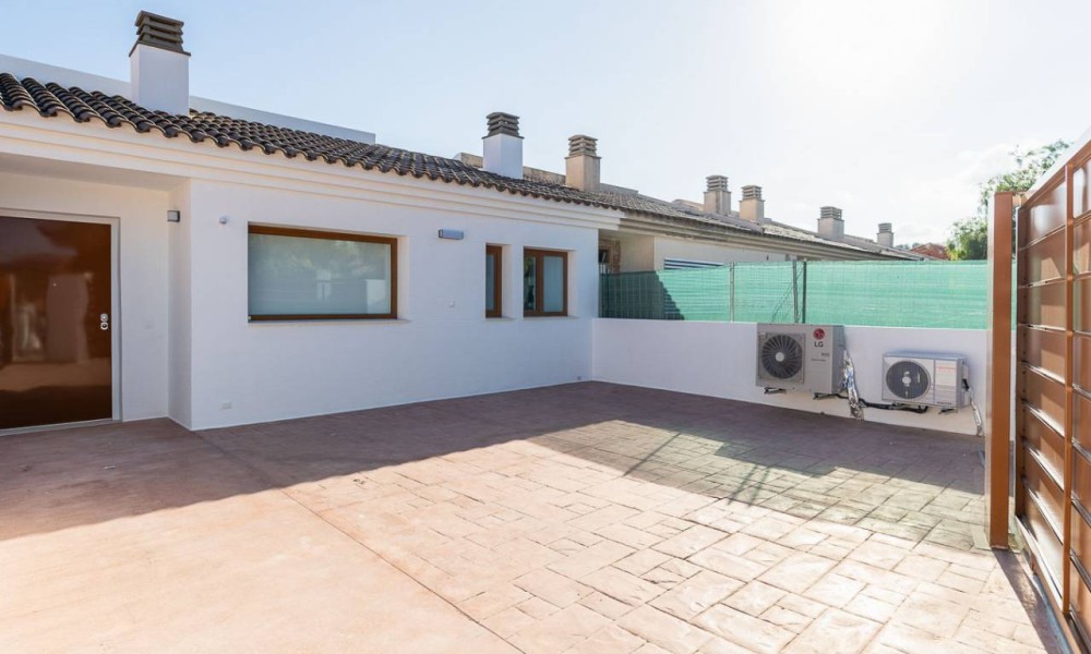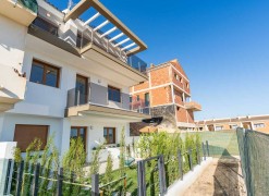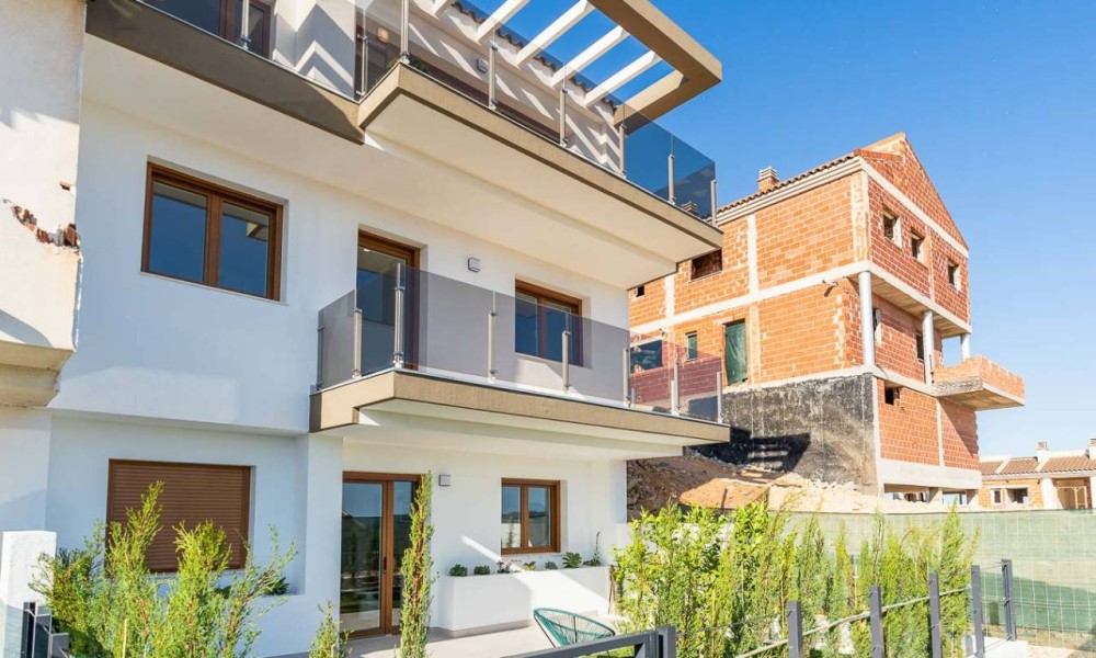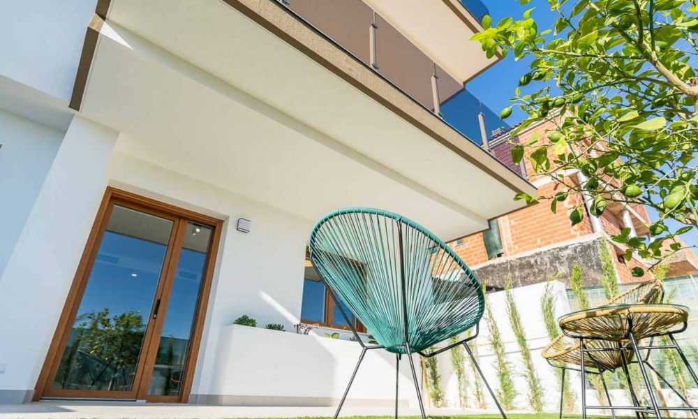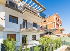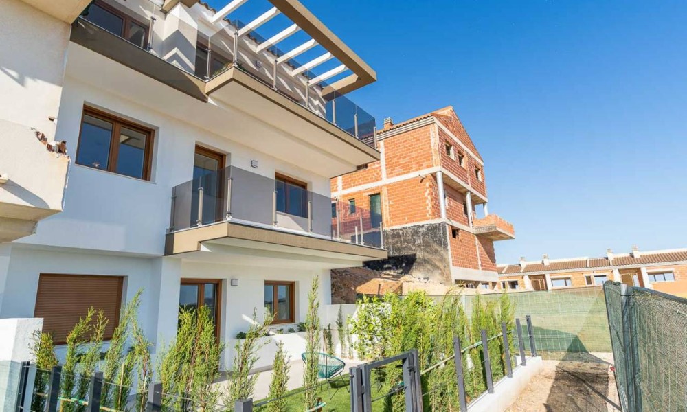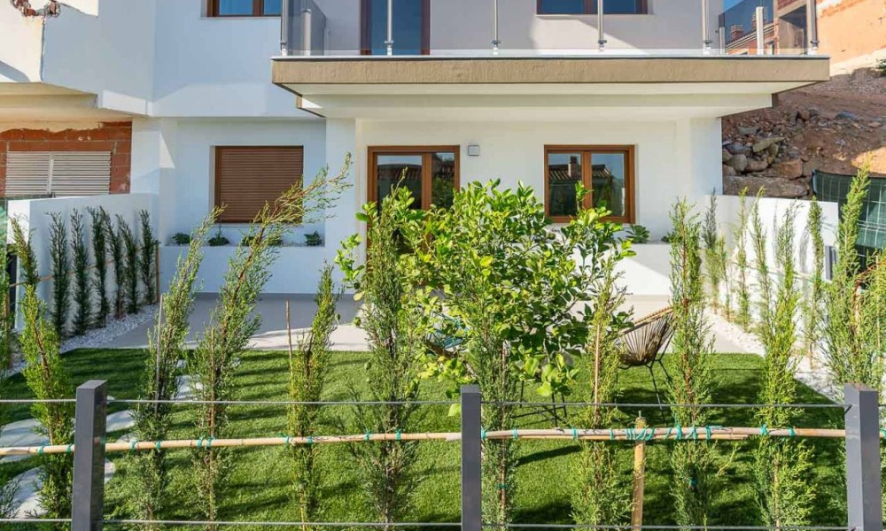 The spacious layouts have been designed to promote a relaxed lifestyle, in contact with nature, with large windows that flood the spaces with light and encourage the connection between indoors and outdoors. Each home has multiple terraces from which you can enjoy spectacular views, a private garden with direct access to the communal areas and parking for two vehicles. Some of them also have a solarium, perfect for enjoying evenings outdoors in the company of family and friends. Distributed over three levels, the upper floor houses the main entrance with two parking spaces, a spacious entrance hall with cloakroom, a guest toilet, an elegant living area with large sliding windows, a modern open-plan kitchen with pantry and a terrace that invites you to relax and contemplate. On the first floor, comfort is elevated with a double bedroom with en suite bathroom and a spectacular master bedroom with en suite bathroom, both with access to a private terrace. Finally, on the ground floor, the space adapts to the needs of each owner, allowing for various configurations, such as an additional living area, an office or even two more bedrooms with en-suite bathrooms, all connected to the garden. This residential complex represents a perfect fusion between design, quality of life and a privileged natural environment, where every detail has been carefully thought out to offer an exceptional living experience.