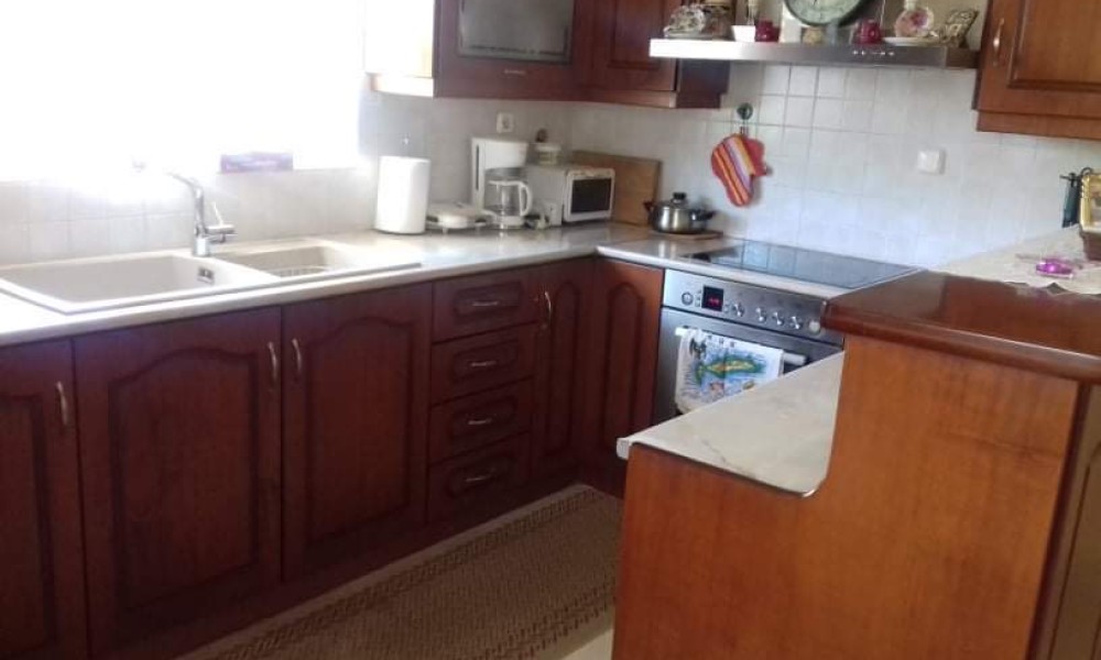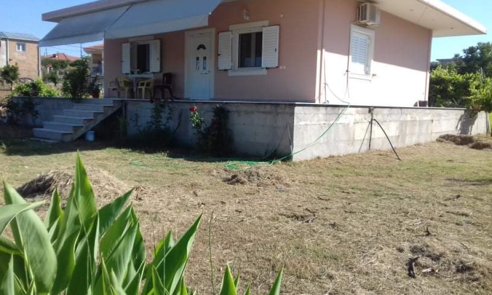 1-storey house of 80 sq.meters in Western Peloponnese. The house consists of 2 bedrooms, living room with kitchen, one bathroom. A magnificent view of the city, the mountain opens up from the windows. There are: a fireplace, air conditioning, heating, a barbecue area. The owners will be leaving the furniture with the sale. Extras included with the property: parking space, garden.