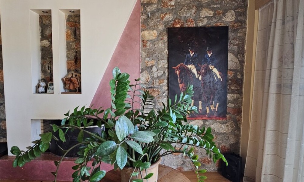 1st floor consists of living room with kitchen. A magnificent view of the city, the sea, the mountain, the forest opens up from the windows. There are: solar panels for water heating, a fireplace, air conditioning, heating, a barbecue area. Extras included with the property: parking space, garden, garage.