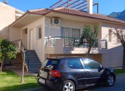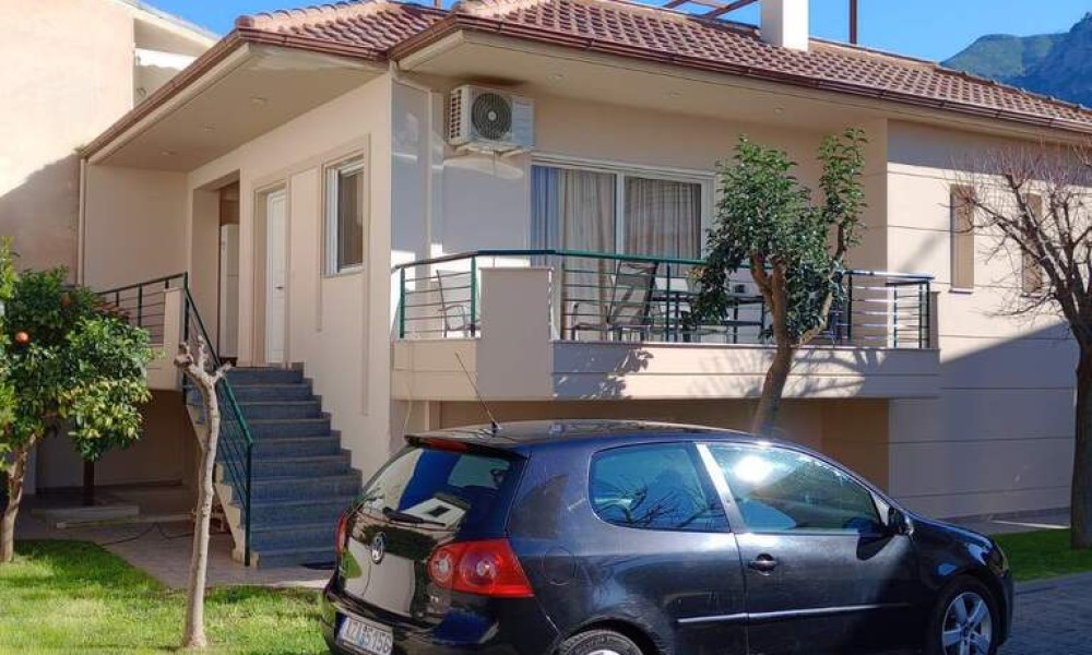 1-storey house of 140 sq.meters in Peloponnese. The house consists of 2 bedrooms, living room with kitchen, 2 shower WC. A view of the mountain opens up from the windows. There are: a fireplace, air conditioning, heating, a barbecue area. The owners will be leaving the furniture with the sale. Extras included with the property: parking space, garden.