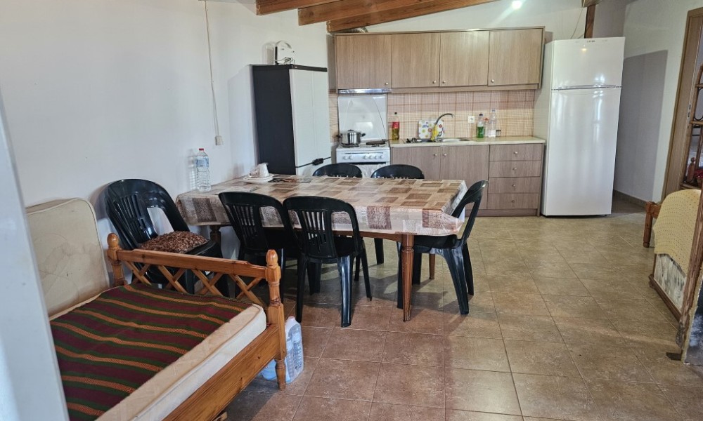 1-storey house of 60 sq.meters in Crete. The house consists of one bedroom, living room with kitchen, one shower WC, one storeroom. A magnificent view of the sea, the mountain, the forest opens up from the windows. There are: a fireplace. The owners will be leaving the furniture with the sale. Extras included with the property: parking space, garden.