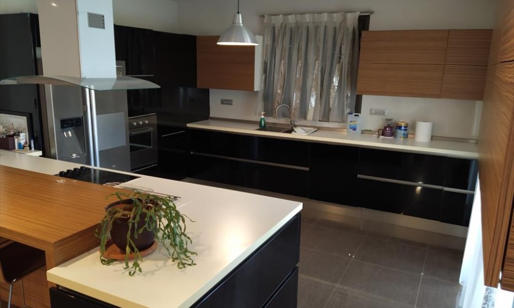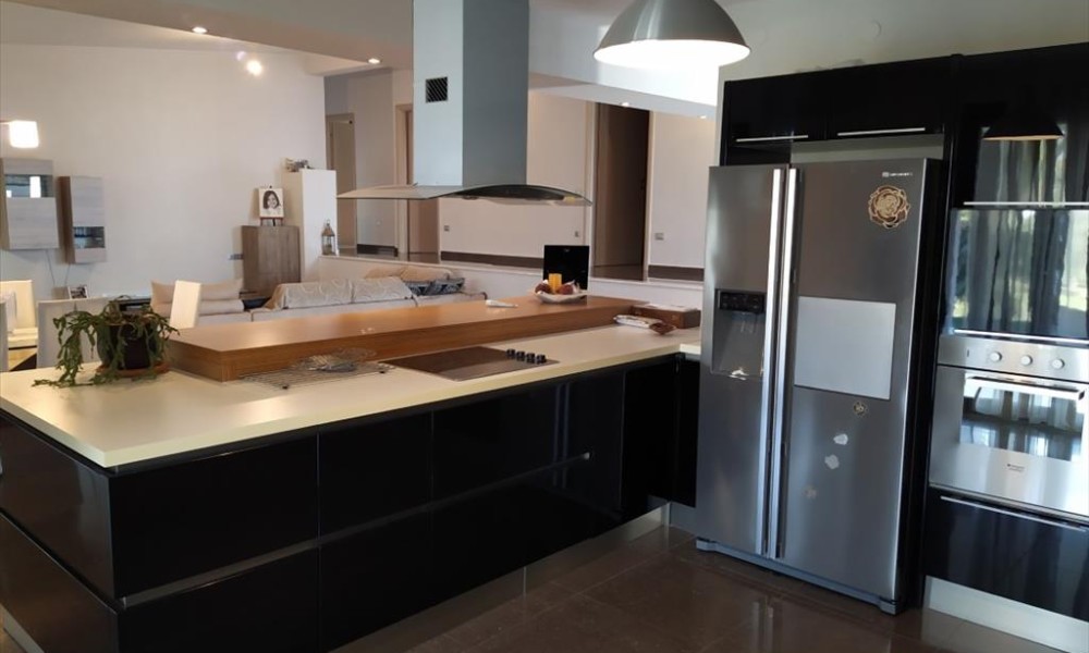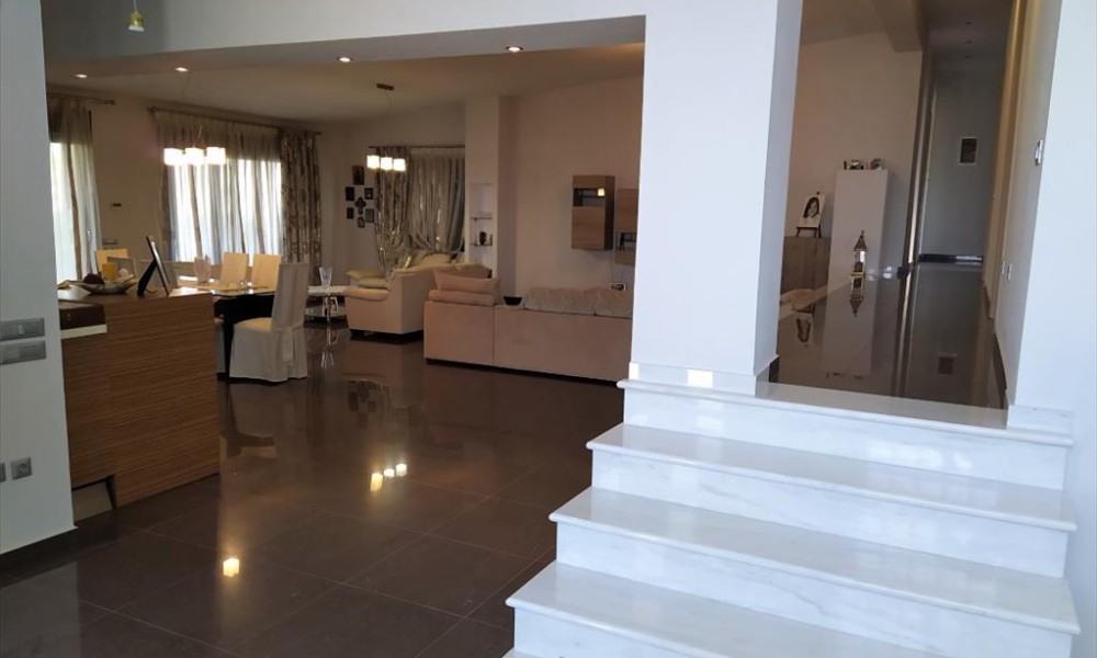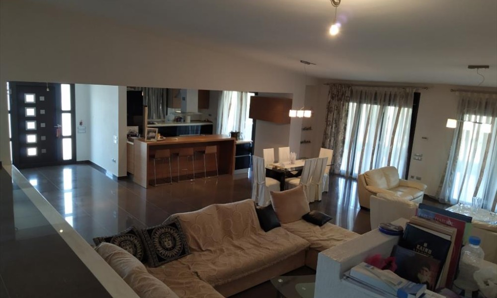 2-storey house of 480 sq.meters in the suburbs of Thessaloniki. Ground floor consists of 2 bedrooms, living room with kitchen, one shower WC, 2 storerooms, one office, one dressing room.