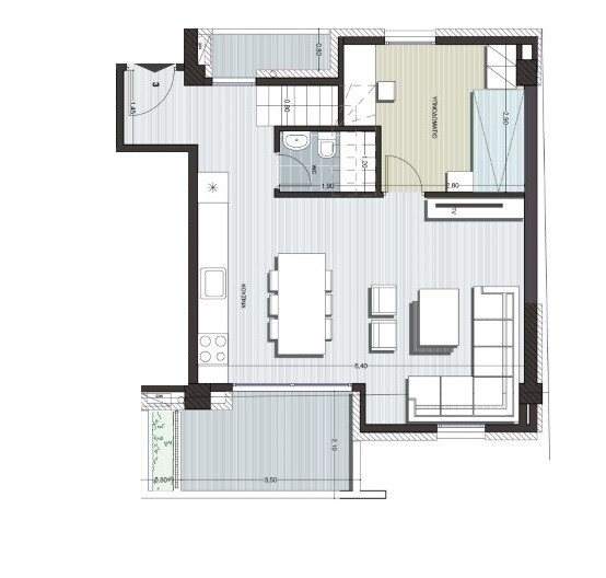 4th floor consists of 2 bedrooms, one shower WC. Building has an elevator.