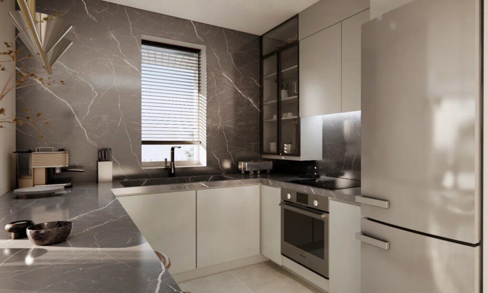 Flat has interior layout. There are: solar panels for water heating, heating.