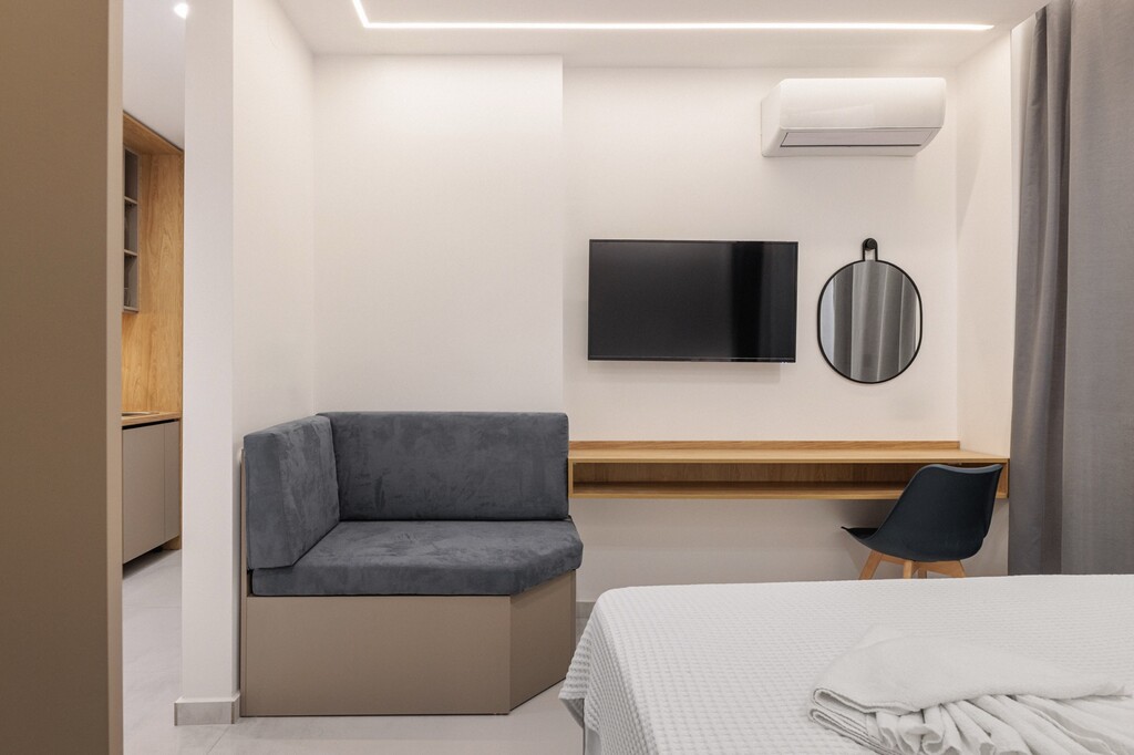 Flat has interior layout. There are: air conditioning, heating. The owners will be leaving the furniture with the sale. Building has an elevator.