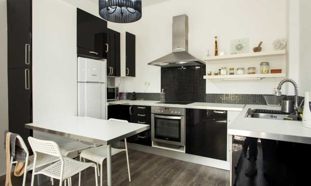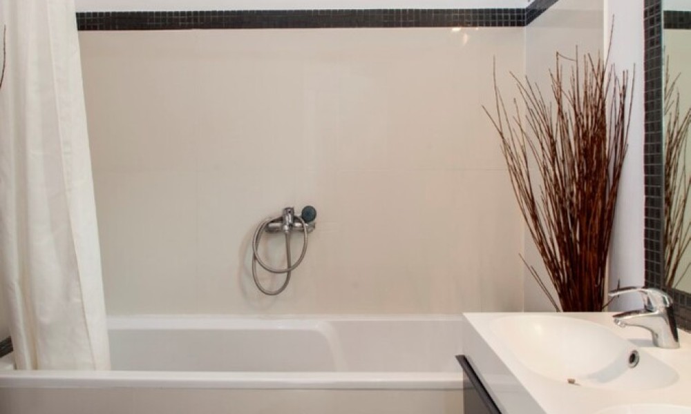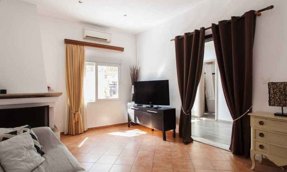 Flat has interior layout. A view of the mountain opens up from the windows. There are: solar panels for water heating, a fireplace, air conditioning, heating. The owners will be leaving the furniture with the sale. There is an alarm system installed.