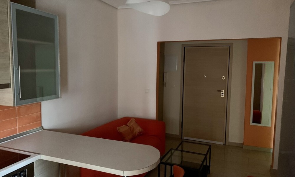 For sale apartment of 45 sq.meters on the Olympic Coast. The apartment is situated on the 1st floor. It consists of one bedroom, living room with kitchen, one shower WC.