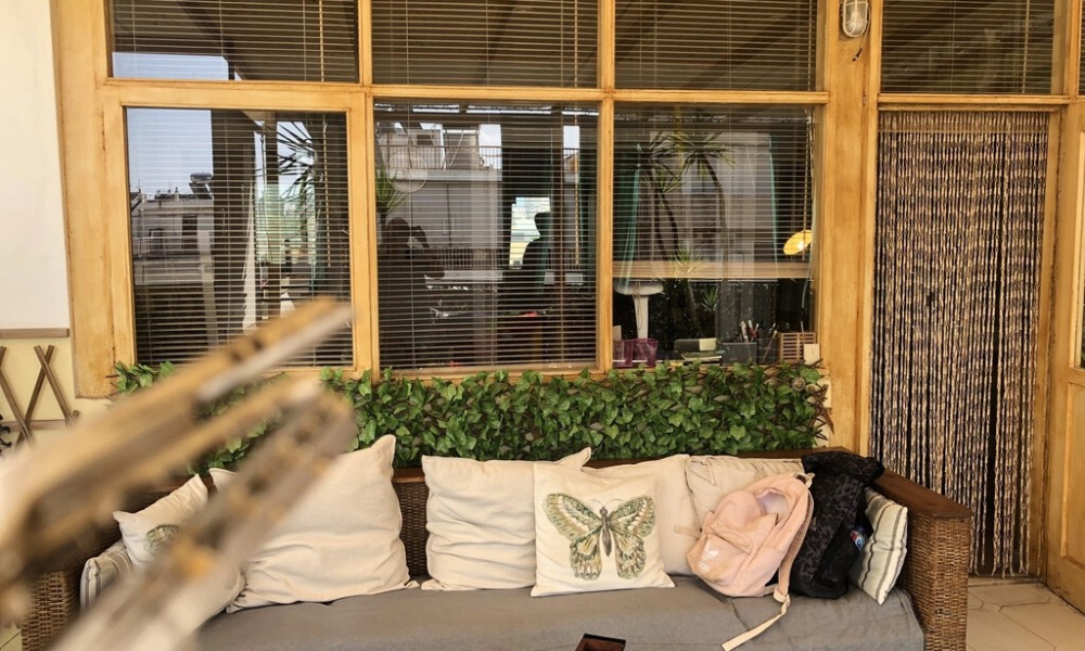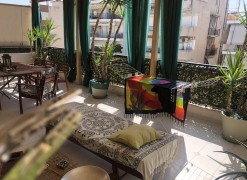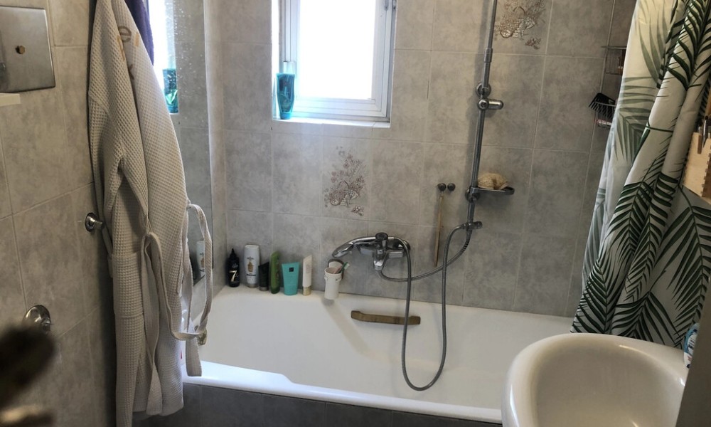 Flat has front layout. There are: solar panels for water heating, air conditioning, awnings, heating. Building has an elevator. Extras included with the property: garage.