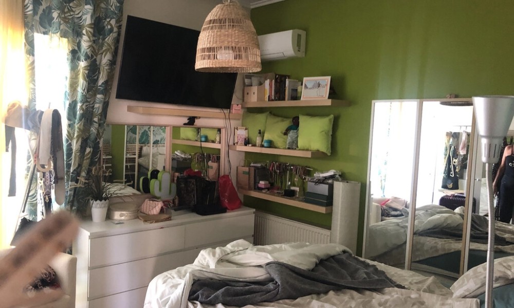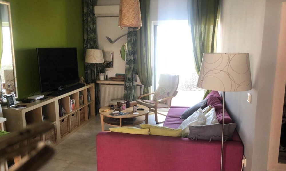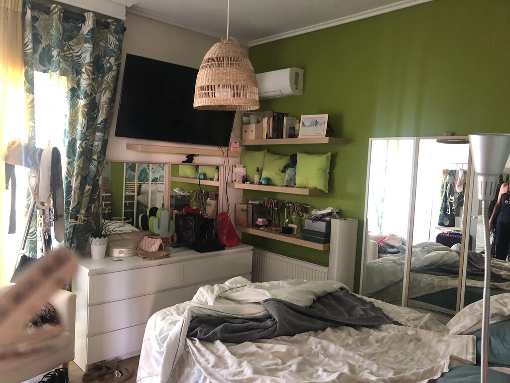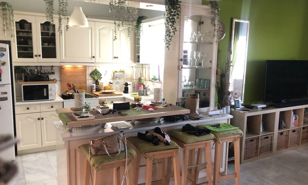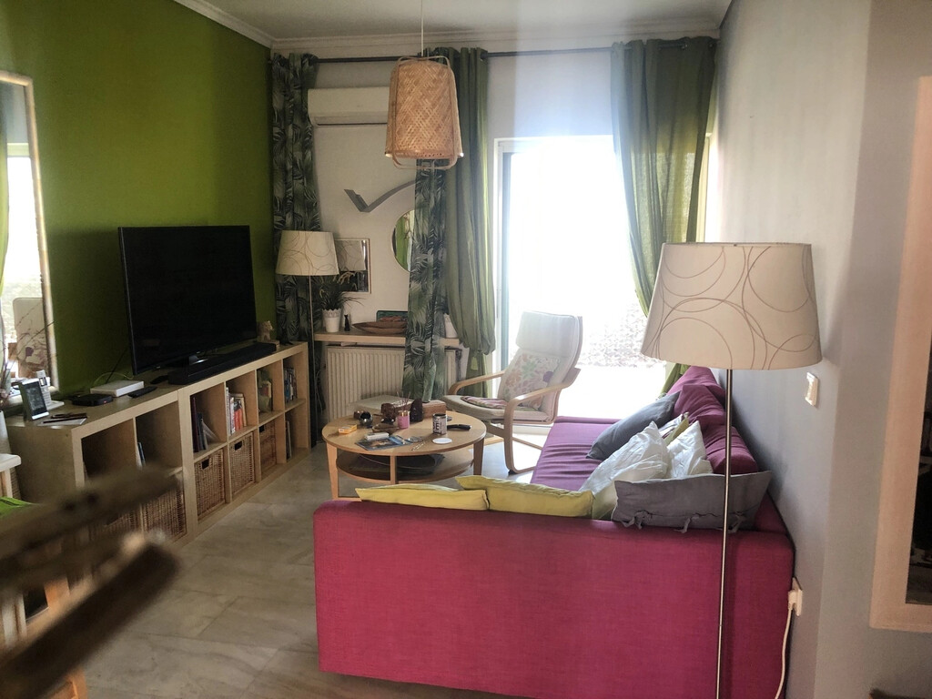 For sale apartment of 90 sq.meters in Athens. The apartment is situated on the 4th floor. It consists of 2 bedrooms, living room with kitchen, one bathroom.