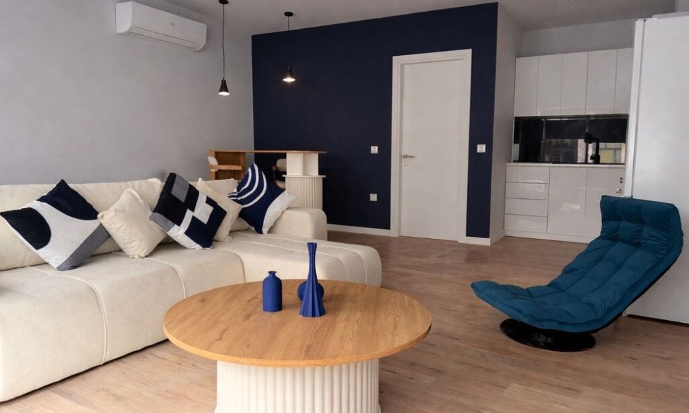 Flat has front layout. There are: air conditioning, heating. The owners will be leaving the furniture with the sale.