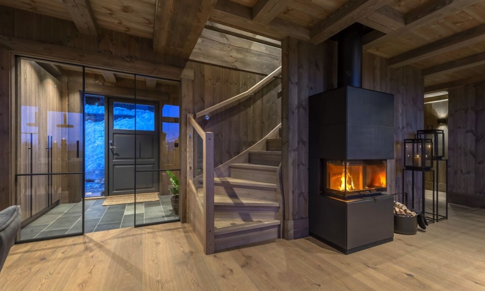 This model includes a built-in fireplace Brunner/Rais. Crafted with quality steel for the lower part and a polished micro cement surface for the upper section, the fireplace is tailored to suit the room’s dimensions. A focal point of exquisite design, the fireplace not only provides warmth and comfort but also adds a distinctive and exclusive style to the cabin’s interior.CONSTRUCTION METHOD