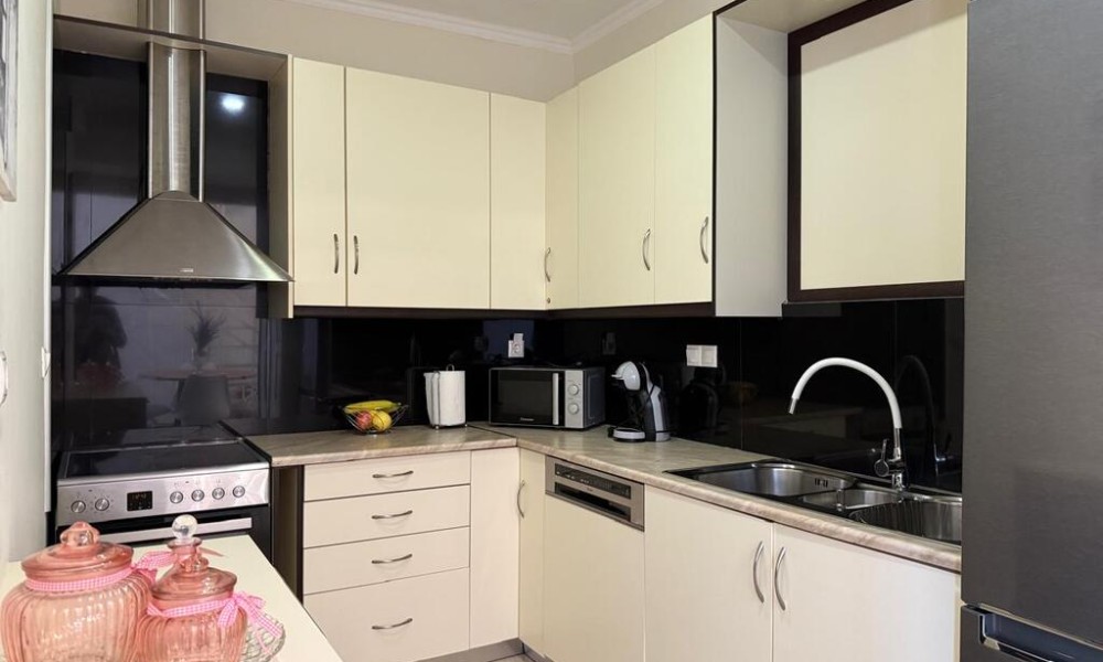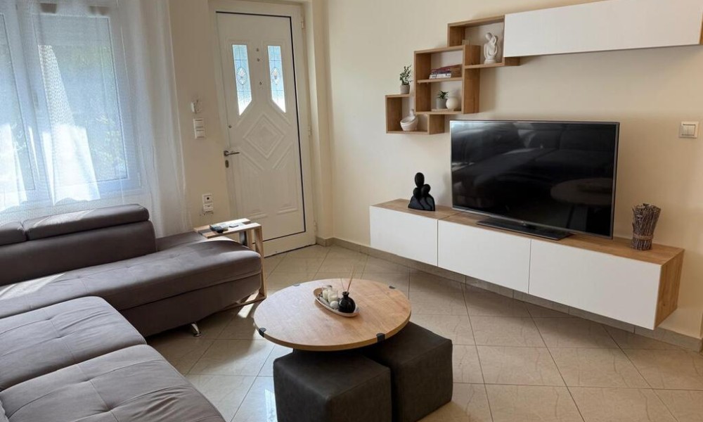 For sale maisonette of 105 sq.meters in Crete. The maisonette has one level. A view of the city opens up from the windows. There are: solar panels for water heating, air conditioning. The owners will be leaving the furniture with the sale.