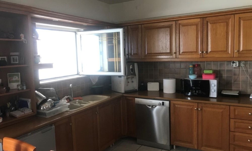 Ground floor consists of 2 bedrooms, living room with kitchen, one kitchen, one bathroom, one storeroom. A view of the city opens up from the windows. There are: solar panels for water heating, air conditioning, awnings, heating. Extras included with the property: garden.