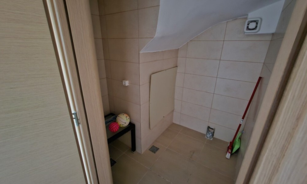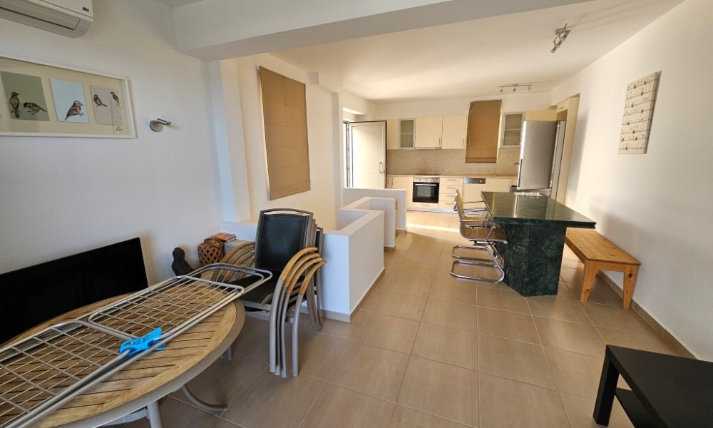 Ground floor consists of living room with kitchen. A view of the sea opens up from the windows. There are: solar panels for water heating, air conditioning. The owners will be leaving the furniture with the sale. Extras included with the property: garden. The property boasts a shared swimming pool.