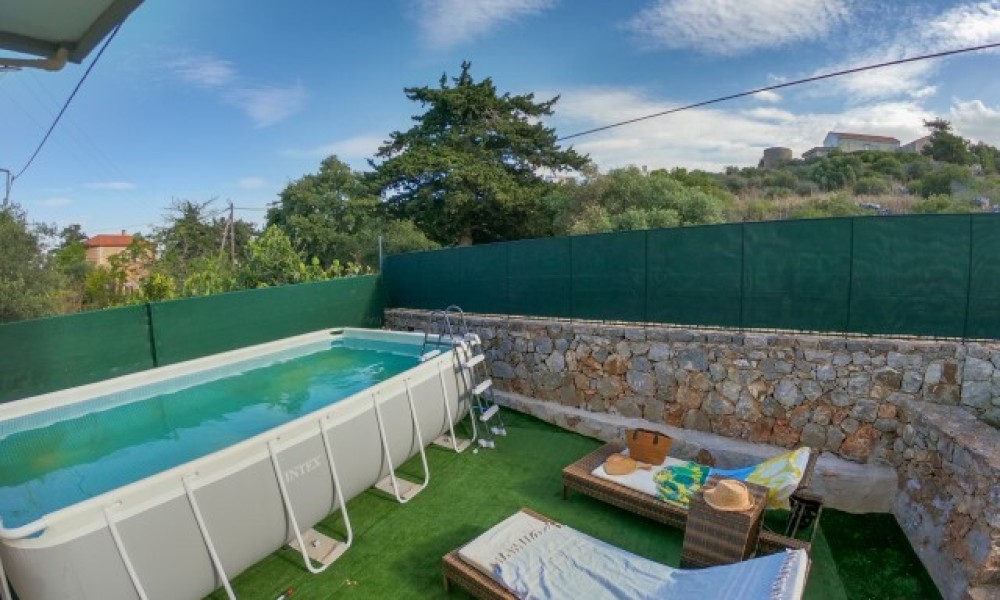 2nd floor consists of 2 bedrooms, one bathroom. A view of the sea, the mountain, the forest opens up from the windows. There are: solar panels for water heating, a fireplace, air conditioning. The owners will be leaving the furniture with the sale. There is an alarm system installed. Extras included with the property: parking space, garage. The property boasts a swimming pool of private use.