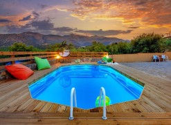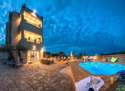2nd floor consists of one storeroom. A view of the sea, the mountain opens up from the windows. There are: solar panels for water heating, air conditioning, heating. Extras included with the property: parking space, garden. The property boasts a swimming pool of private use.
