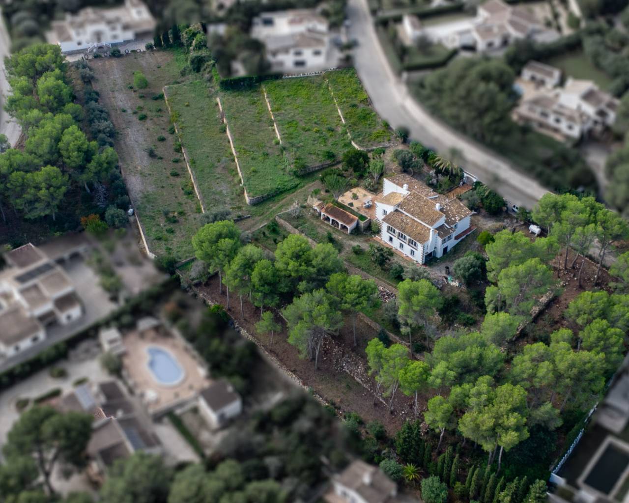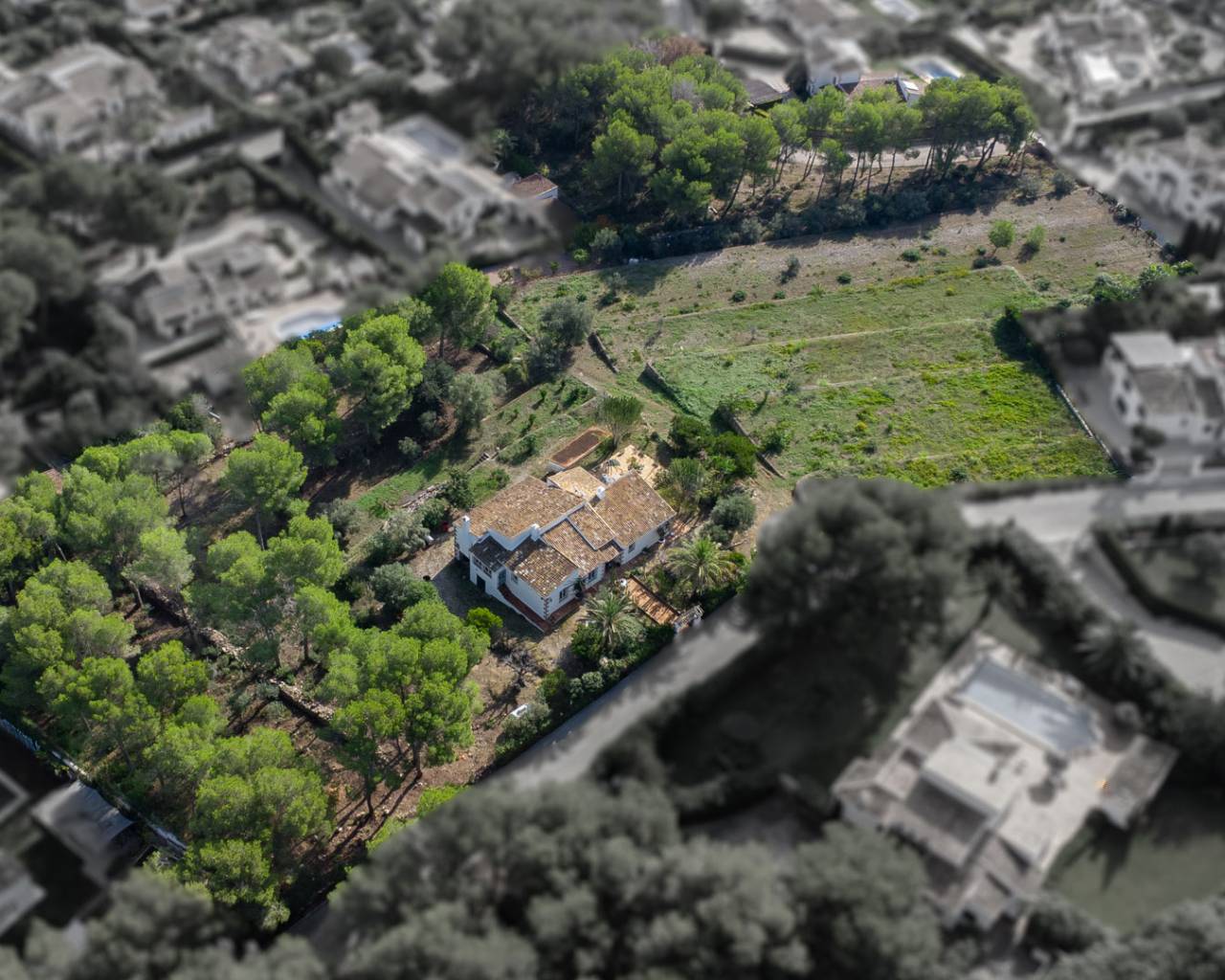 4 urban building plots with a total area of 8638 m2 for sale in La Lluca, JáveaThese four building plots are located in the exclusive and prestigious residential area of La Lluca, just a stone’s throw from the Jávea golf club and less than 5 km from both the historic centre and the beach.The plots are fully urbanised and each has direct access from the street. A house of approximately 700 m2 can be built on each plot. On one of the plots, it is also permitted to build two semi-detached villas of 350 m2 each.One of the plots currently has a 297 m2 villa on two floors.