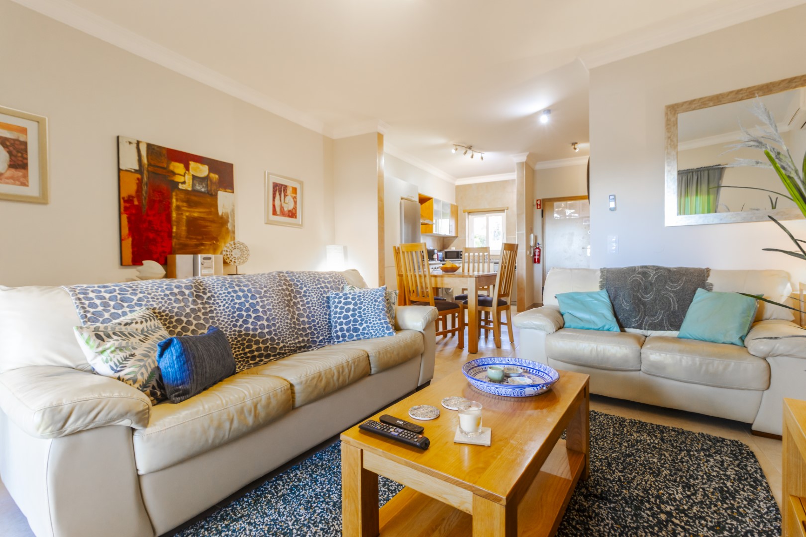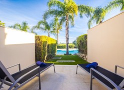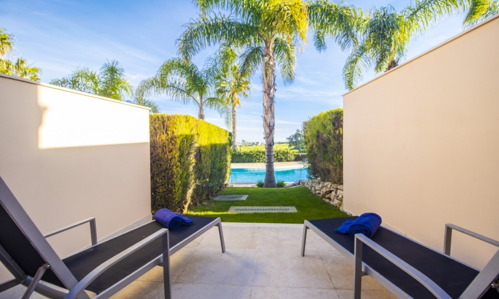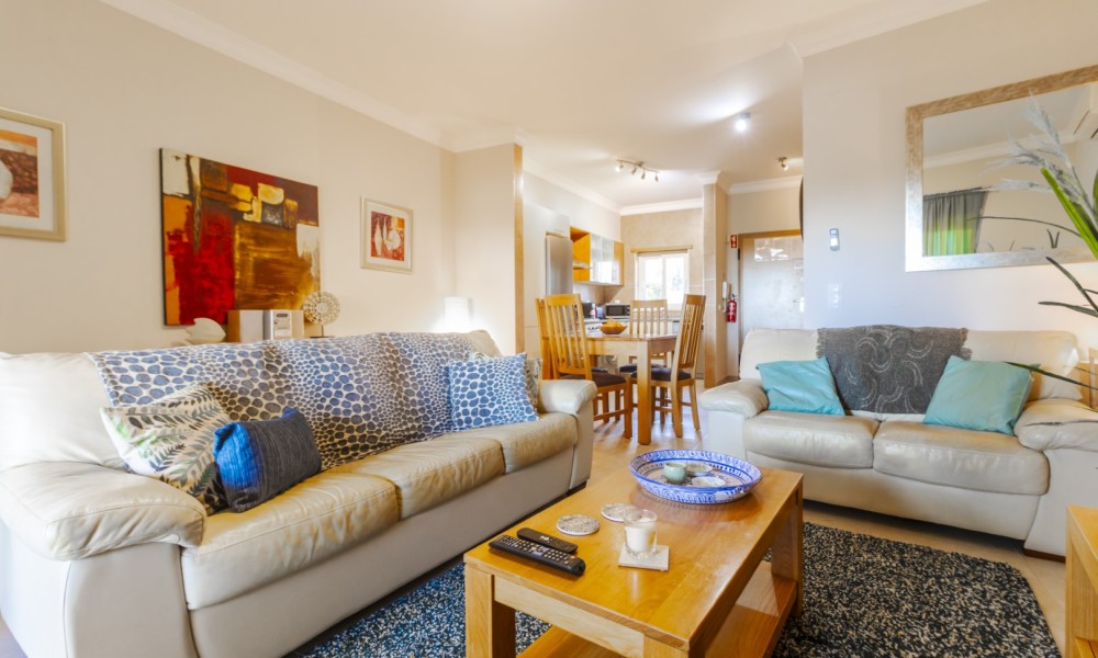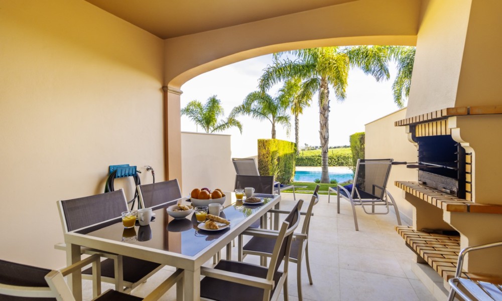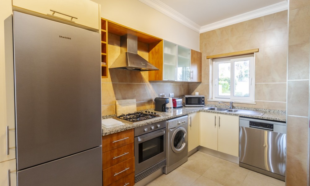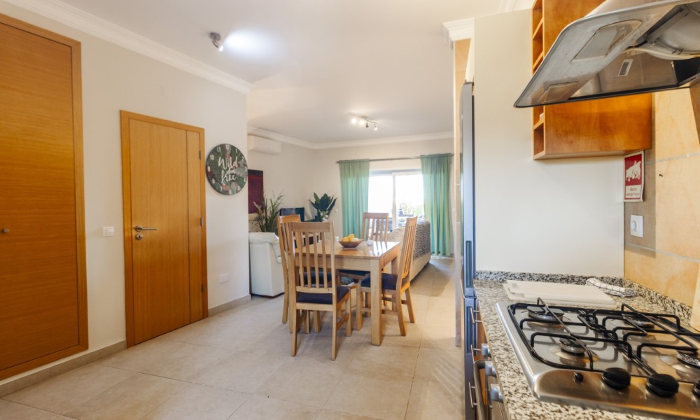 Located in the exclusive area of Atalaia, this luxury property is set on the small condominium of Quinta da Atalaia, a select development of just 12 townhouses. It is in a wonderful, peaceful location just outside the city of Lagos and only 3 minutes drive from Boavista Golf Resort and Porto do Mos beach. The condominium is secure with electric entrance gates and boasts a stunning, large communal pool with excellent sun exposure and private tennis court/5-aside football pitch set amongst landscaped semi-tropical gardens.Entering the property your are welcomed with a comfortable living & dining room with large patio doors which open up to a large covered terrace with BBQ area. There is also an open plan fully equipped kitchen.