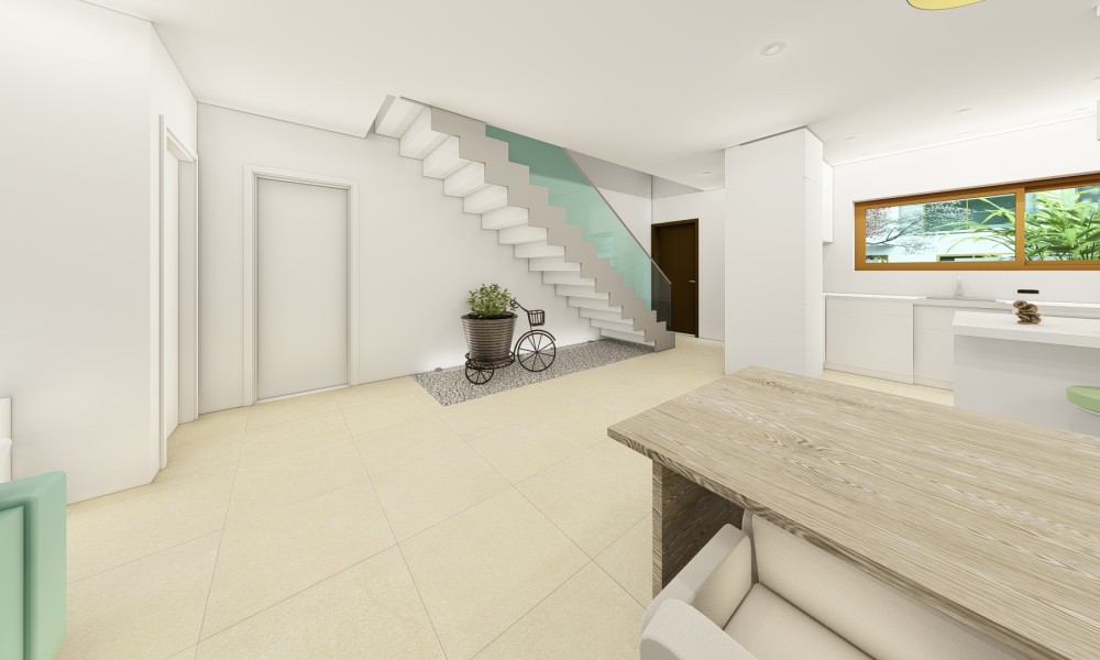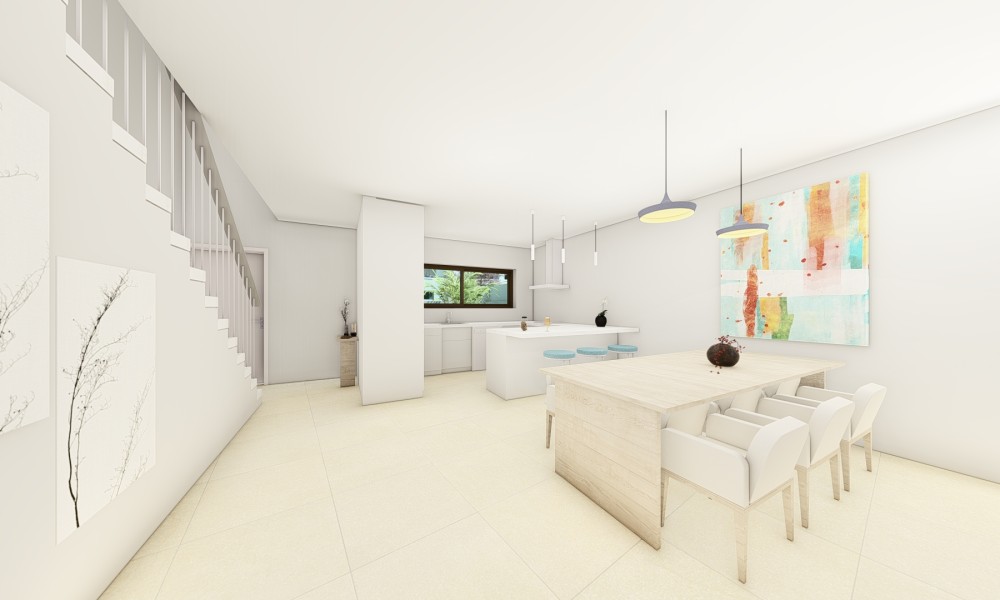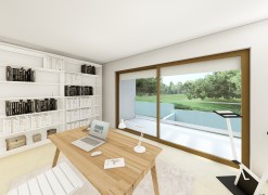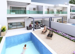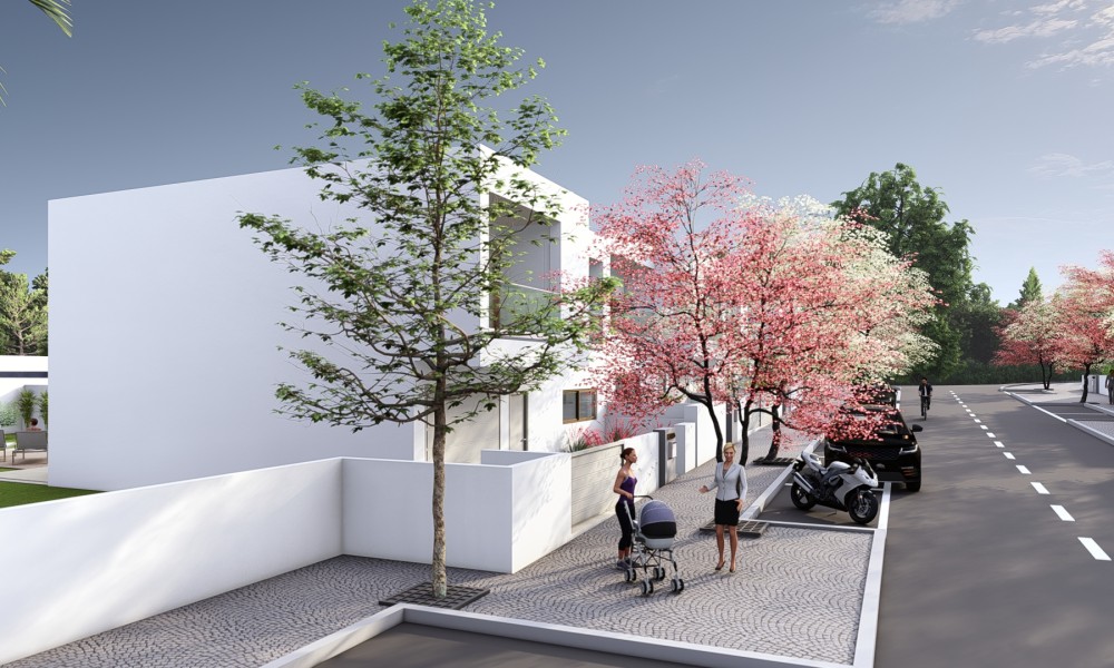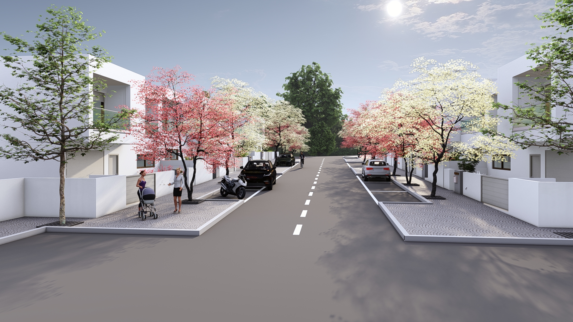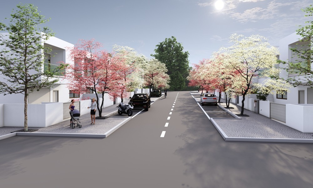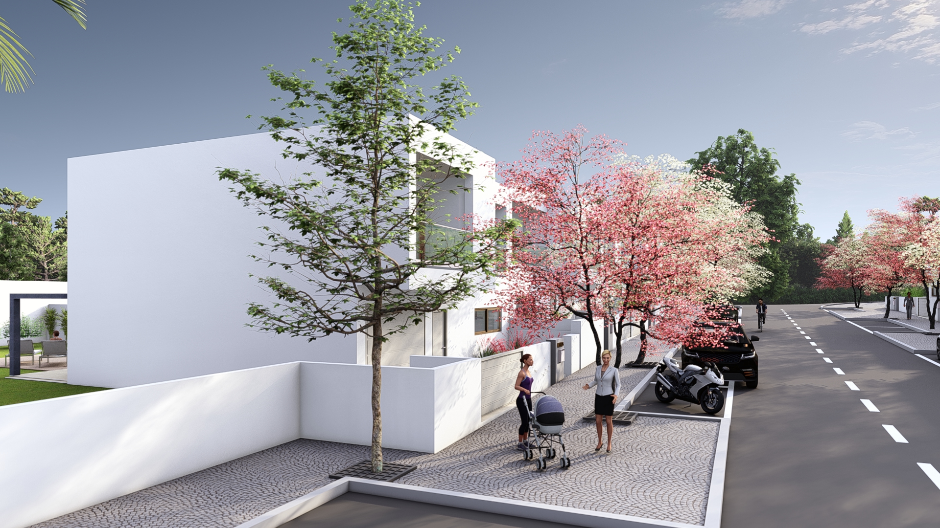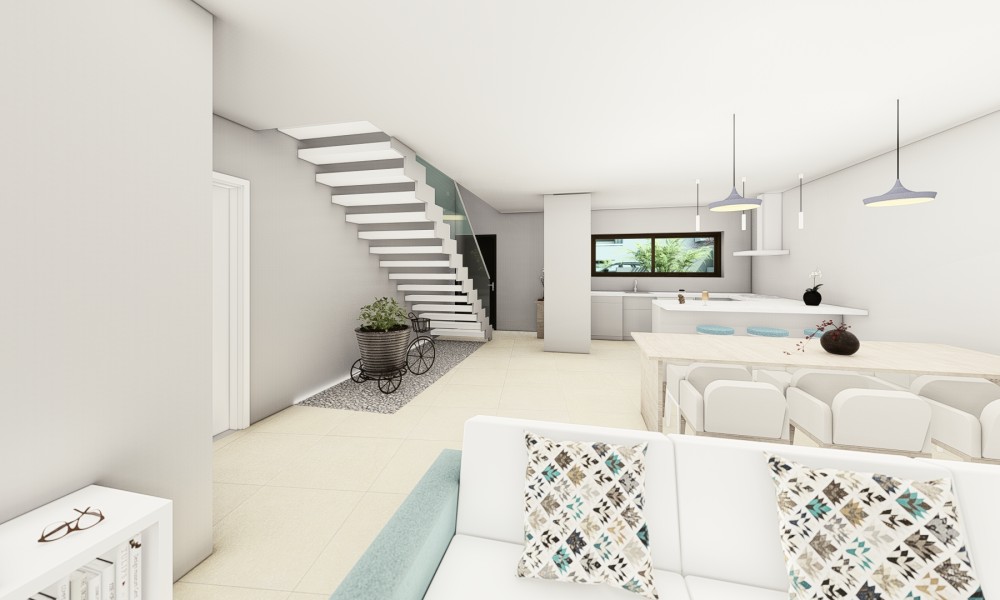 An office space, also with an ensuite, offers versatility for work or study, while both bedrooms benefit from outdoor balconies. A spacious terrace provides a serene overlook of the courtyard and presents expansive views of the surroundings.Each townhouse is designed with modern comforts in mind, including double glazing, electric shutters in the bedrooms, and blackout blinds in the living area. The properties are equipped with LED lighting, solar panels, and a storage water heater for efficiency.With land sizes ranging from 210 to 700 sqm and a building area of up to 187 sqm and prices from €640.000.00 to €840.000.00. These two-storey homes offer a great balance of luxury and practicality, perfect for those seeking a modern lifestyle in a beautiful location.