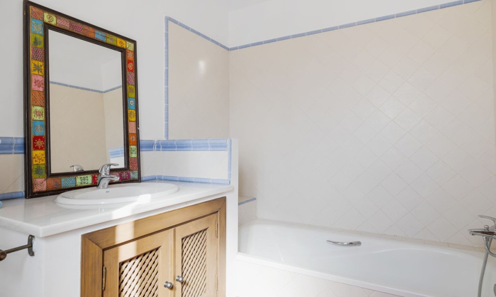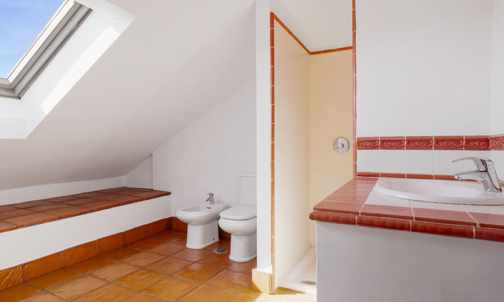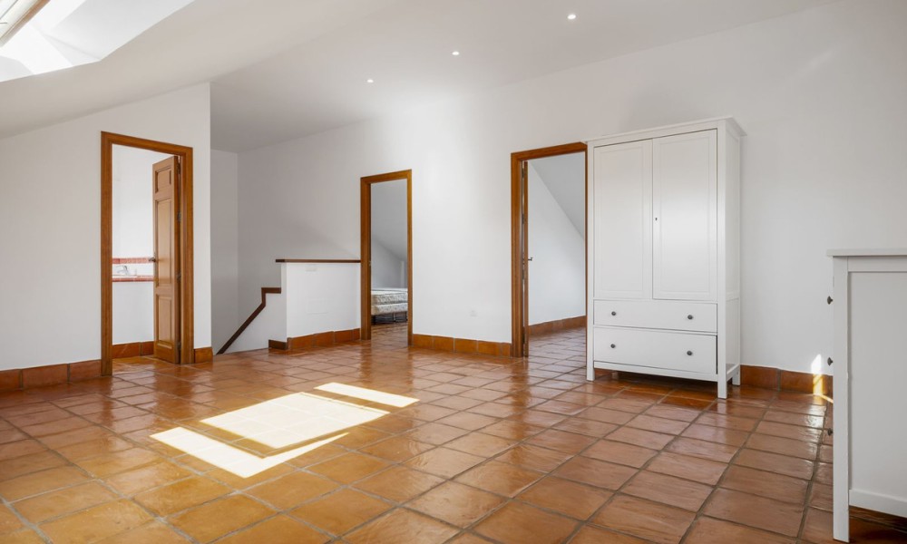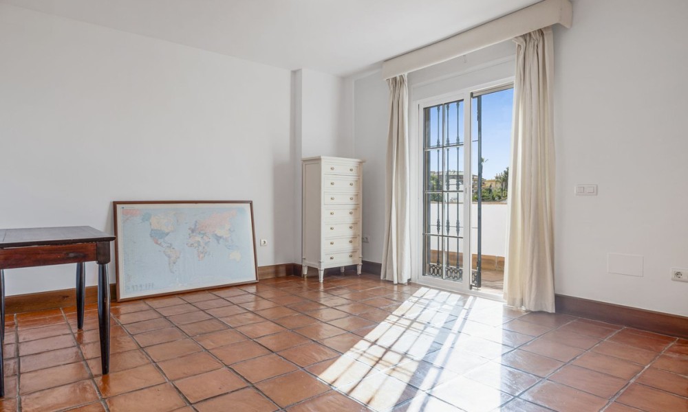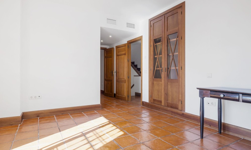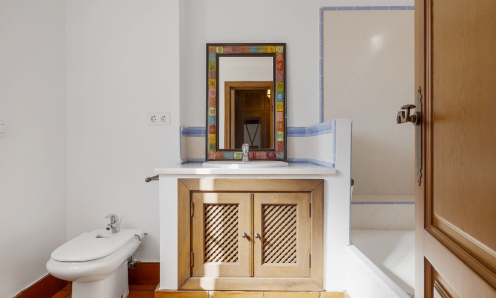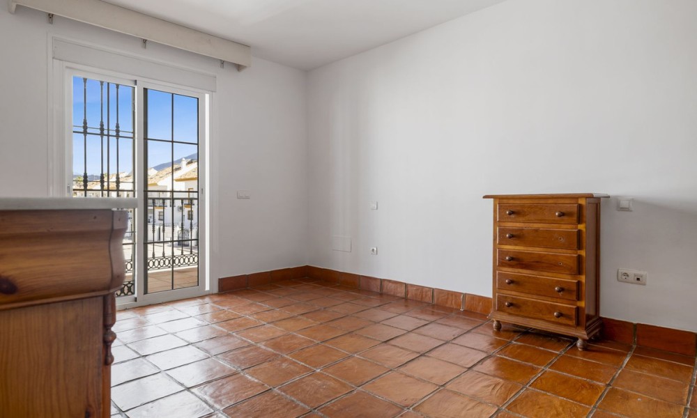 Set within the traditional urbanization in San Pedro, this classic Andalusian townhouse combines timeless Mediterranean design with warm terracotta flooring and charming architectural features. The home exudes authentic Spanish character while offering a canvas ready for modern upgrades, ideal for those seeking to create a personalised retreat in the Costa del Sol.The main floor is centred around a spacious open-plan living and dining room, featuring a cozy fireplace and direct access to outdoor terraces and the private garden. The layout flows seamlessly into a partially fitted kitchen and includes a guest toilet for added convenience. Traditional proportions and natural light throughout create a welcoming and functional family space.The first floor hosts the master bedroom with en suite bathroom, offering privacy and comfort. An additional en suite guest bedroom on this level makes it ideal for accommodating family or visitors with ease.The upper level includes two additional guest bedrooms that share a second full bathroom, providing flexible sleeping arrangements for a growing family, guests, or potential home office use.Designed for indoor-outdoor living, the property boasts a mix of covered and open terraces ideal for dining al fresco, entertaining, or relaxing by the private pool. With direct garden access from the main living areas, the home lends itself beautifully to the laid-back Mediterranean lifestyle.While the property does not currently include spa or gym facilities, its private pool and peaceful setting offer plenty of potential for creating a wellness-oriented space. The quiet residential environment is perfect for those seeking tranquillity and relaxation in their everyday surroundings.