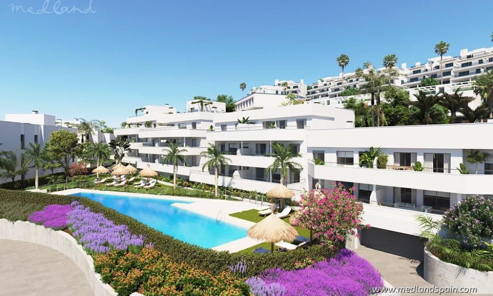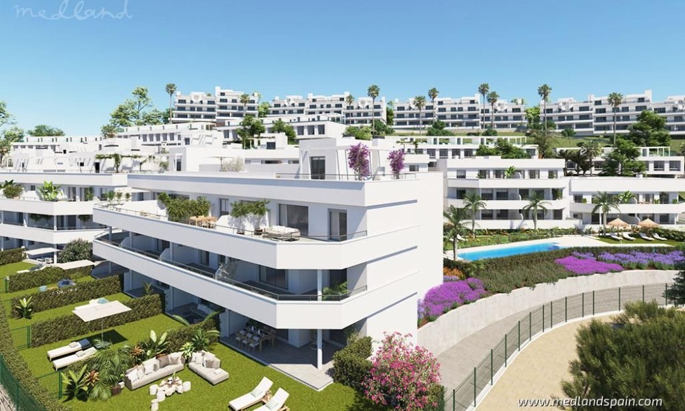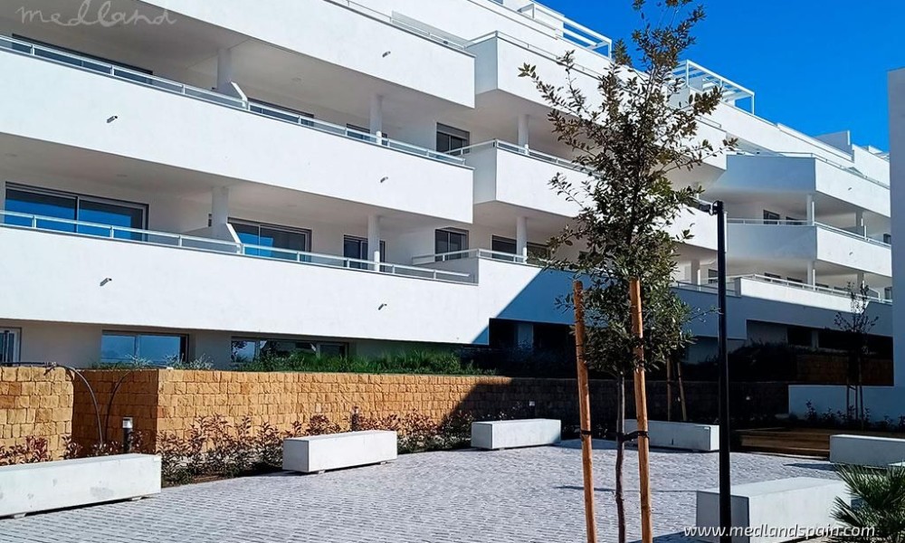 New development of apartments and terraced villas close to Estepona. The complex is in a peaceful location, with Estepona and Marbella only 15 and 25 minutes away, respectively. All the necessary services are within walking distance, like supermarkets, schools, health centre, restaurants, and leisure activities. It is the perfect place for outdoor sports enthusiasts, with several golf courses surrounding the complex, and water sports activities available at the beach, which is only 7 minutes away by car. The complex is close to the fantastic AP-7 and A-7 motorways, making it easy to reach Malaga Airport and Gibraltar Airport in less than an hour.Apartments with 2 or 3 bedrooms available in various models: ground floor models, mid-floor models, penthouses, and penthouses on two floors. The project als includes terraced villas on two floors, with 2 bedrooms, 2 bathrooms, a guest toilet, and two terraces. All the properties present an open plan living area, combining the kitchen, dining area and lounge into a large space with access to the terrace.