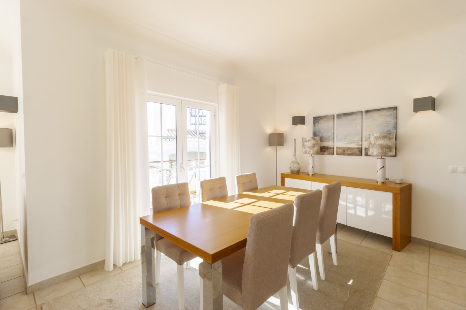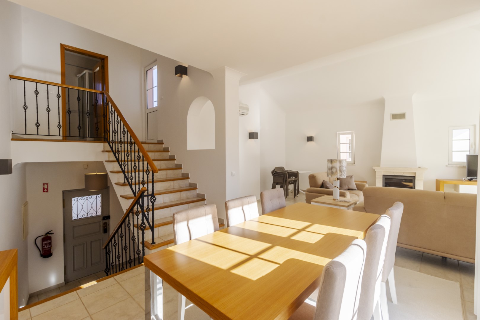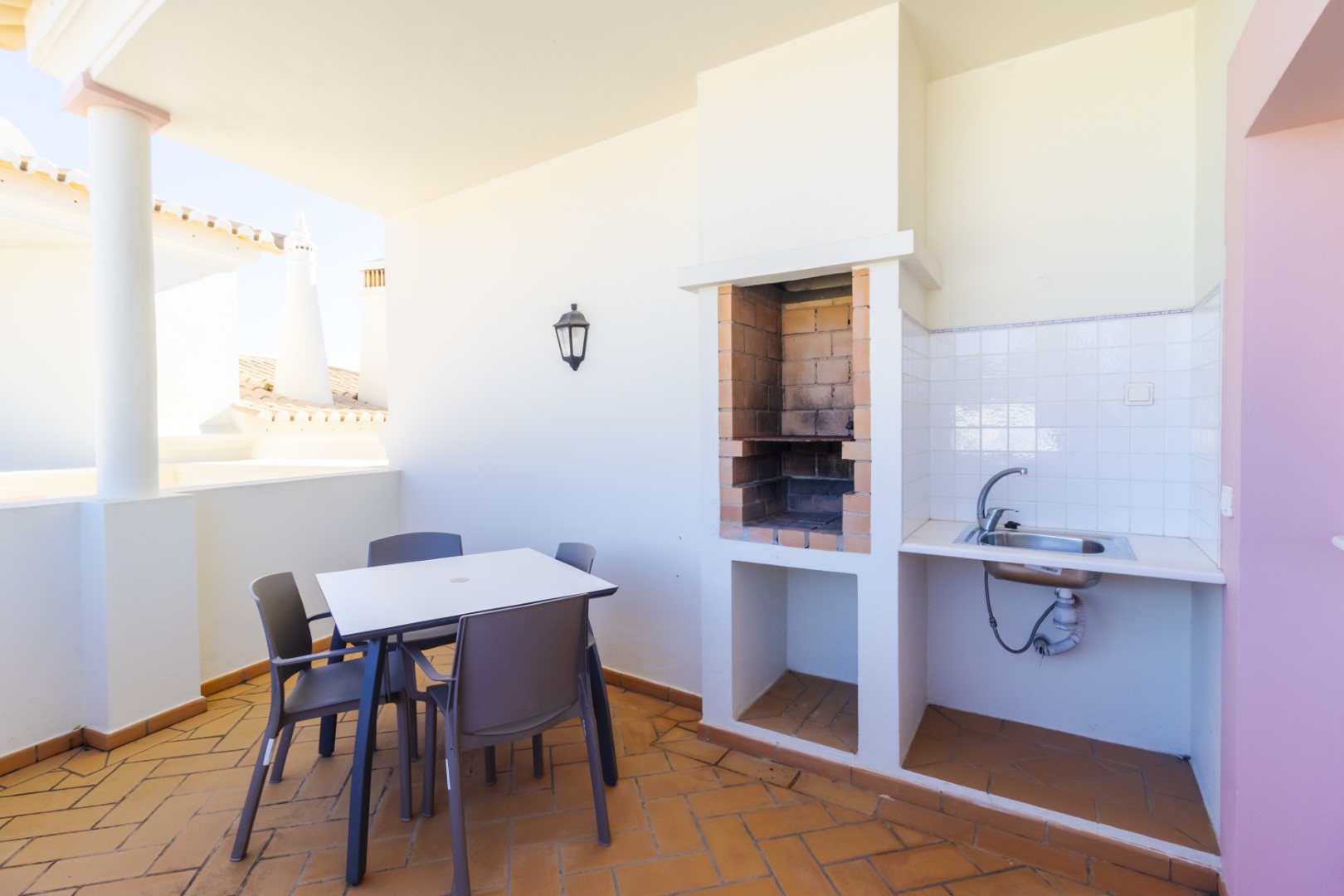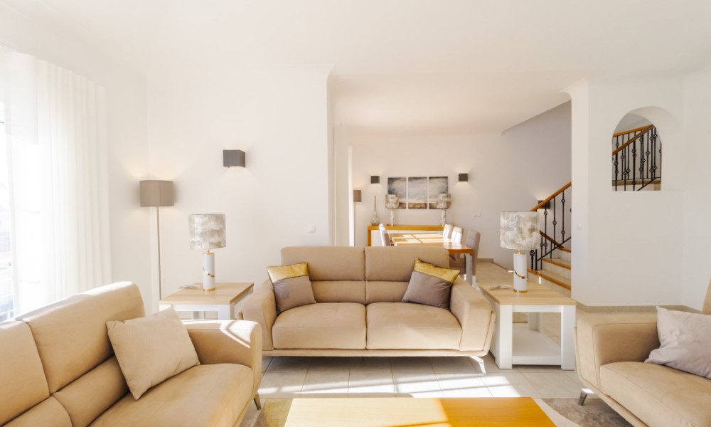 This beautiful 2 bedroom townhouse is located in Quinta da Encosta Velha, conveniently close to all amenities of Budens, and just a 5 minute drive to the beautiful Salema beach.The living space is spread across two levels. The upper level features a bright spacious lounge and dining area with patio doors opening onto a balcony. The property also offers a roof terrace with 2 sun loungers to appreciate the fantastic views of the countryside and the golf course.Adjacent to the entry hallway, you’ll find a fully equipped kitchen with integrated appliances. From the lounge, a staircase leads up to a terrace with a barbecue and outdoor dining area, along with one of the bathrooms.The lower level comprises a double and a twin bedroom and another main bathroom.